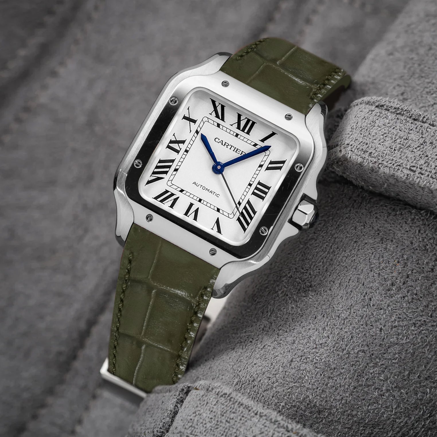 Cartier New Santos Quick Release Straps - Croco Vert Olive