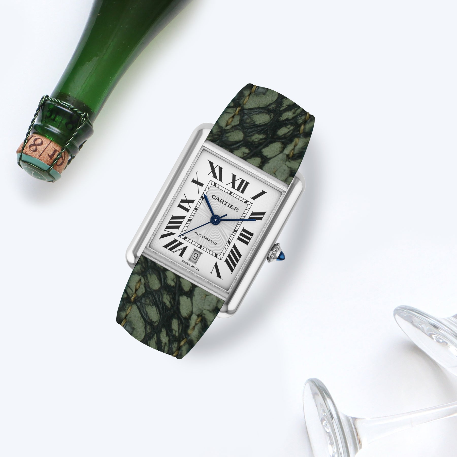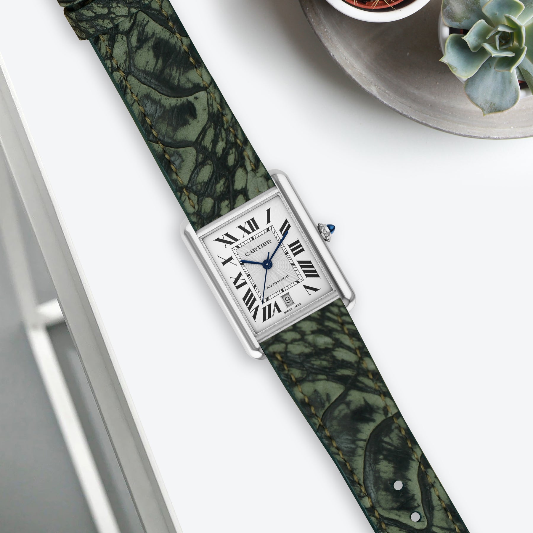 Cartier Tank Straps - Ostrich Leg Nubuck Green