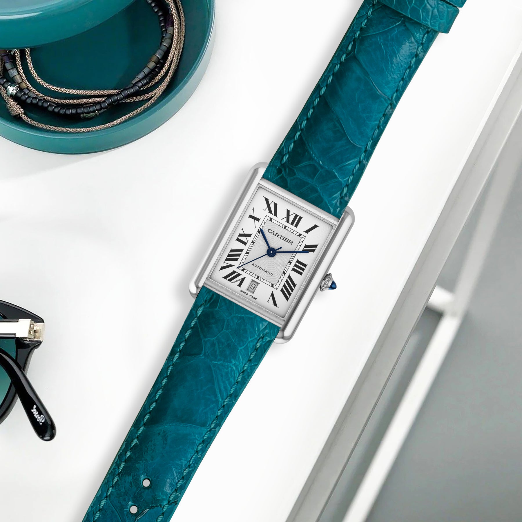 Cartier Tank Straps - Ostrich Leg Turchese