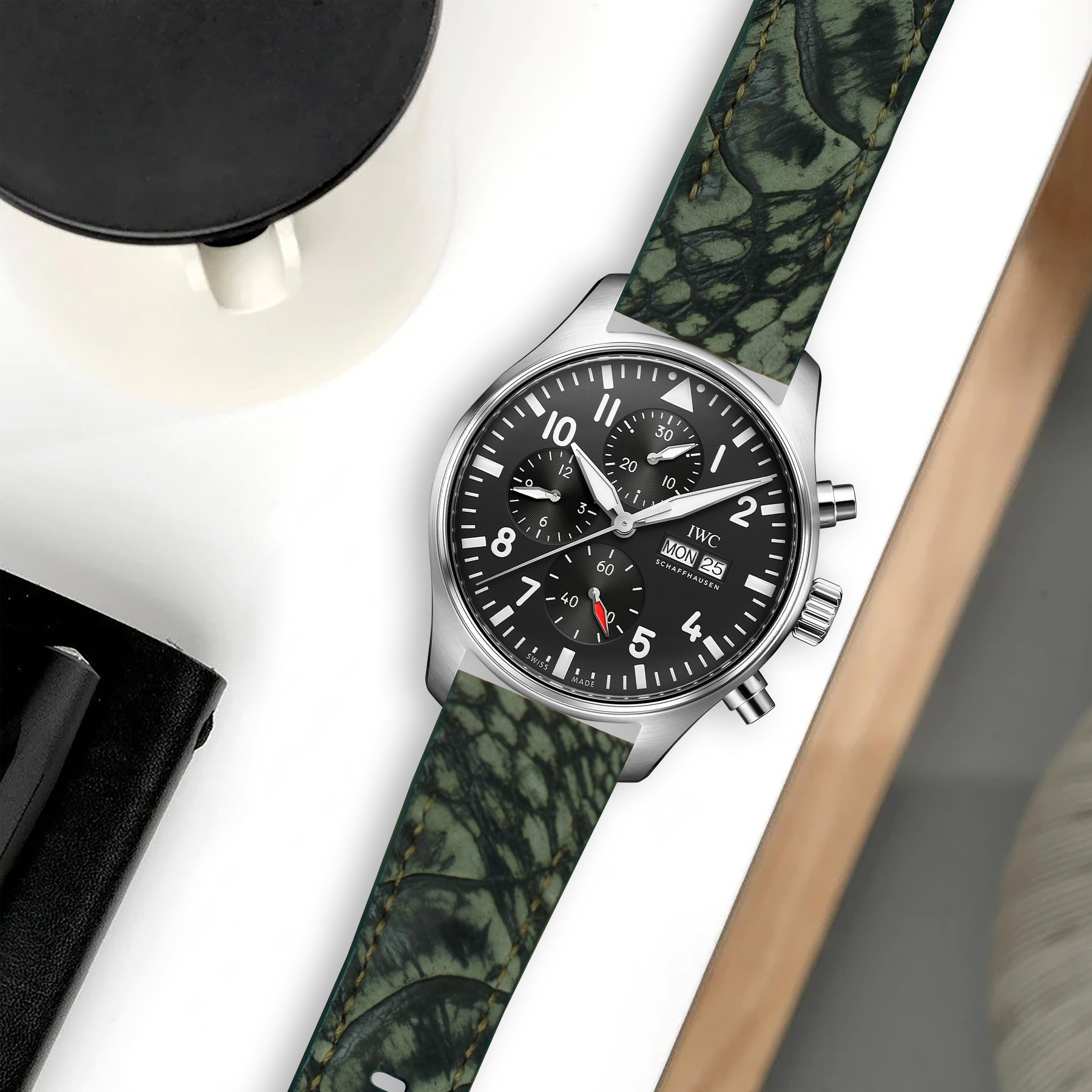 IWC Easx Change Straps - Ostrich Leg Nubuck Green