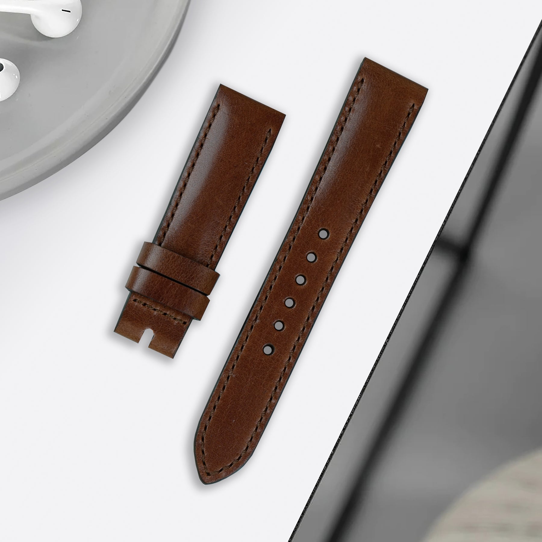Meticulously crafted from Vacchetta leather, treated with a luxurious oil to create a beautiful depth to the finish that elevates your timepiece to new heights. Whether paired with a classic dress watch, a vintage timepiece, or a modern sports watch, this strap is a versatile complement.