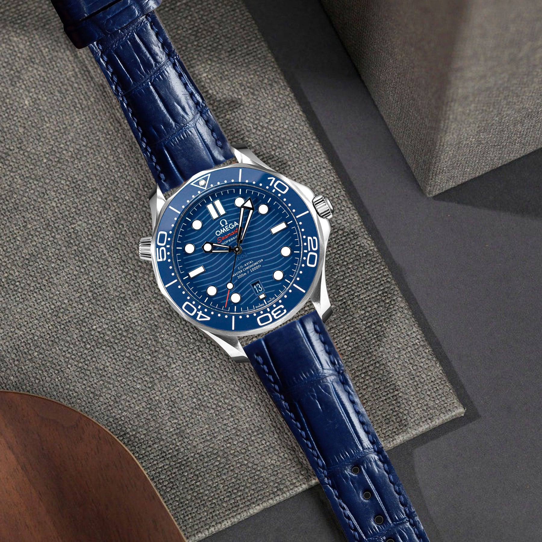 Omega Seamaster Diver 300m Straps - Croco Navy Blue
