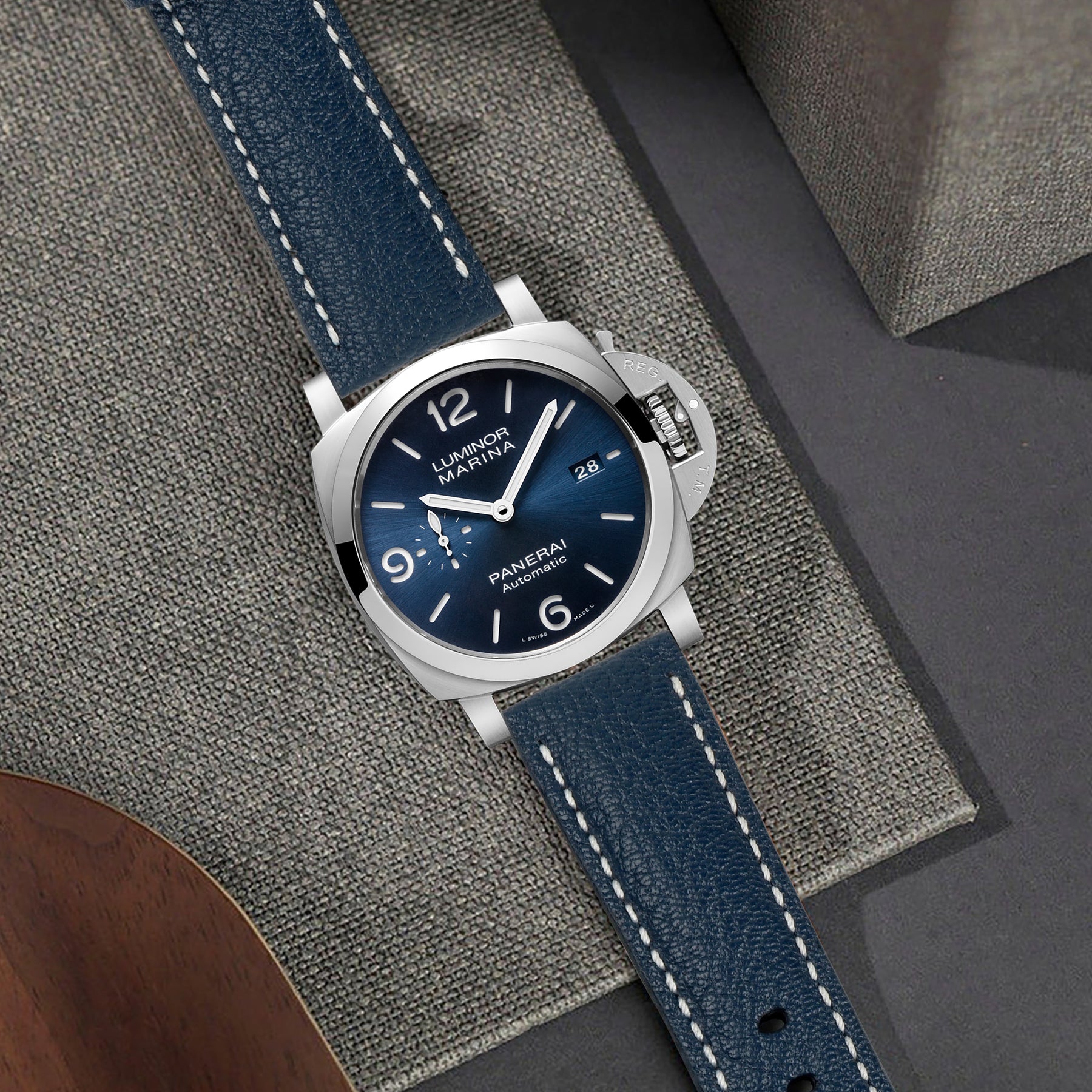 Chevre is immediately recognisable from its texture and grain. A smooth surface and a slight gloss immediately imparts luxuriousness to products made with this leather. Not only a feast for the eyes, chevre is also strongly water and scratch-resistant, and is a great option for daily wear watch straps.