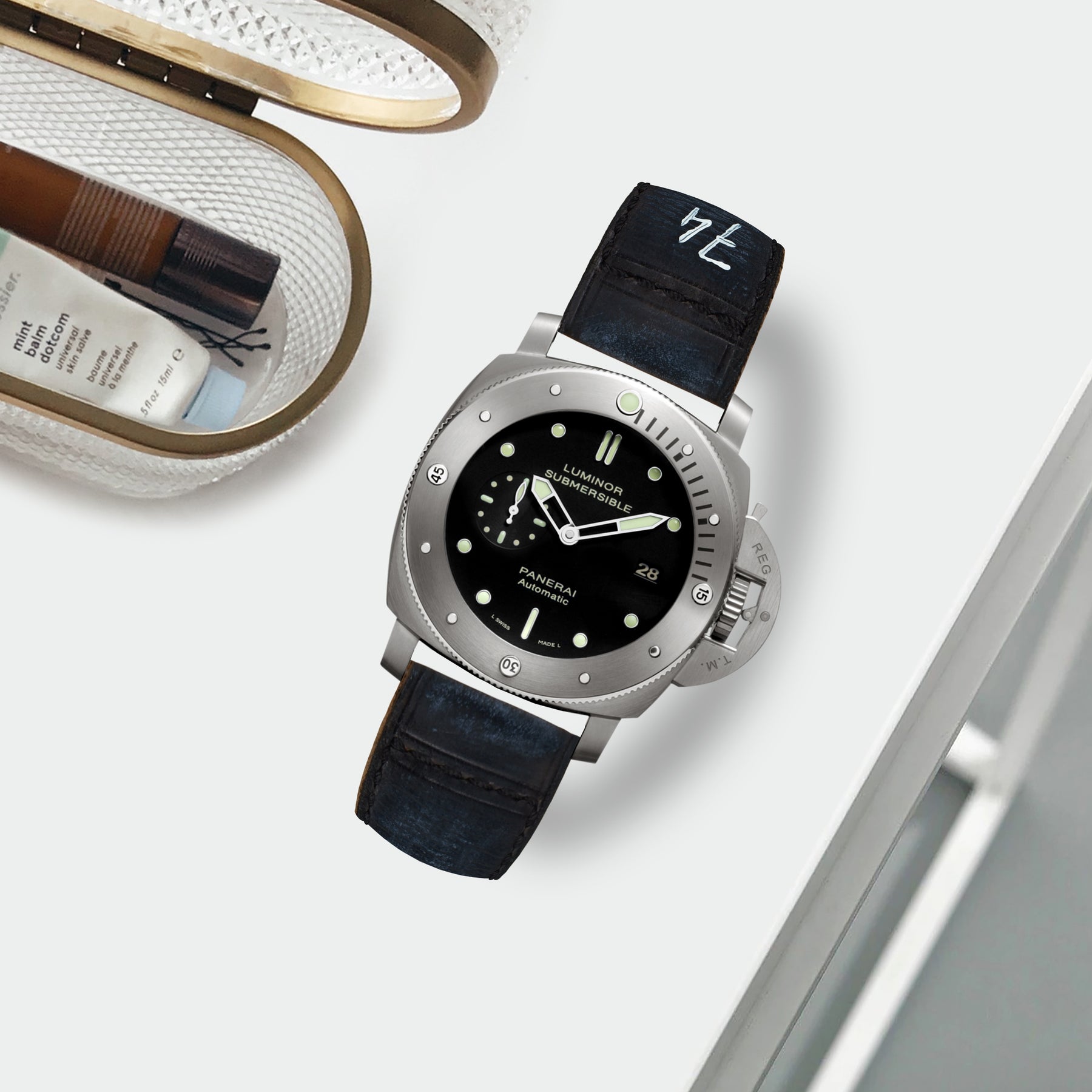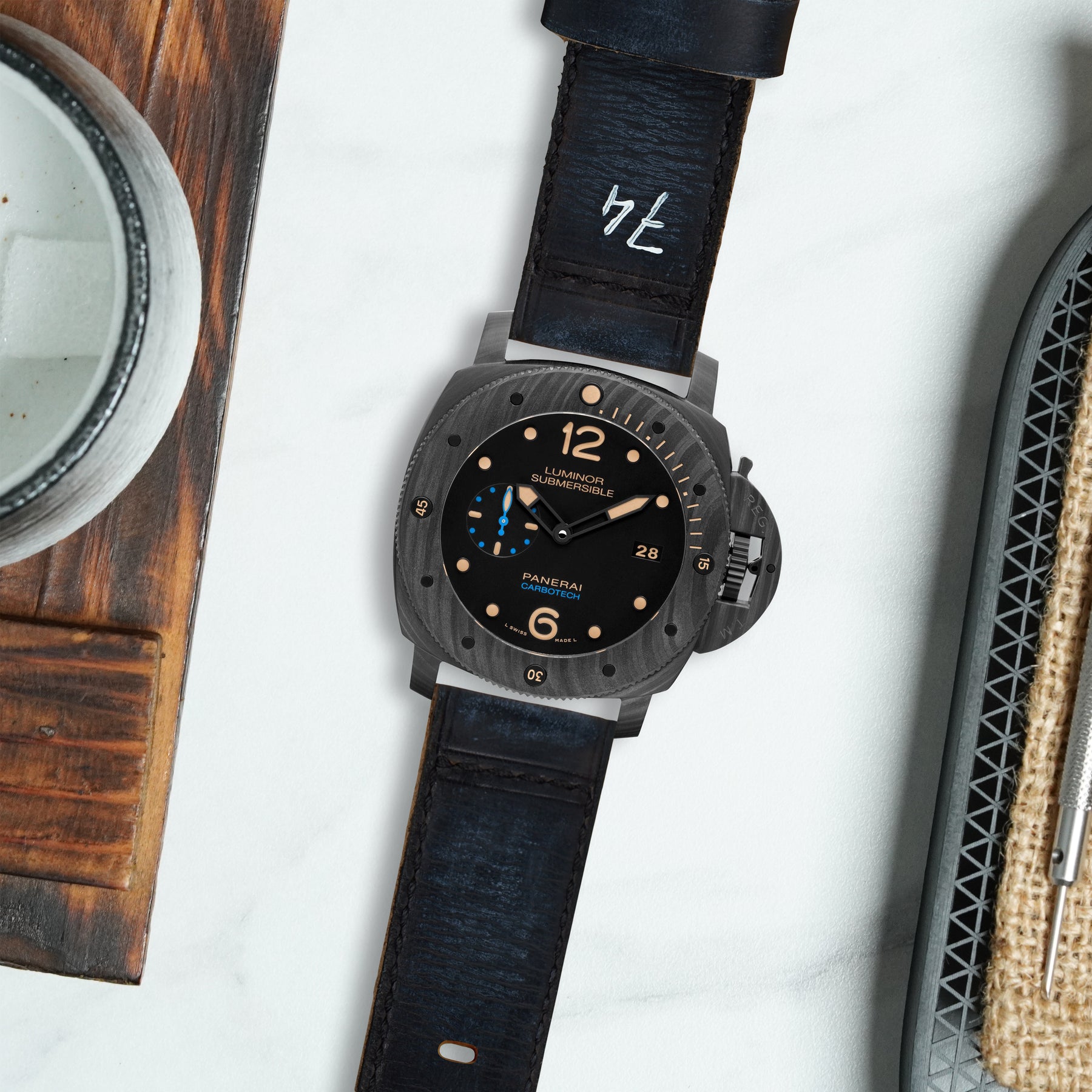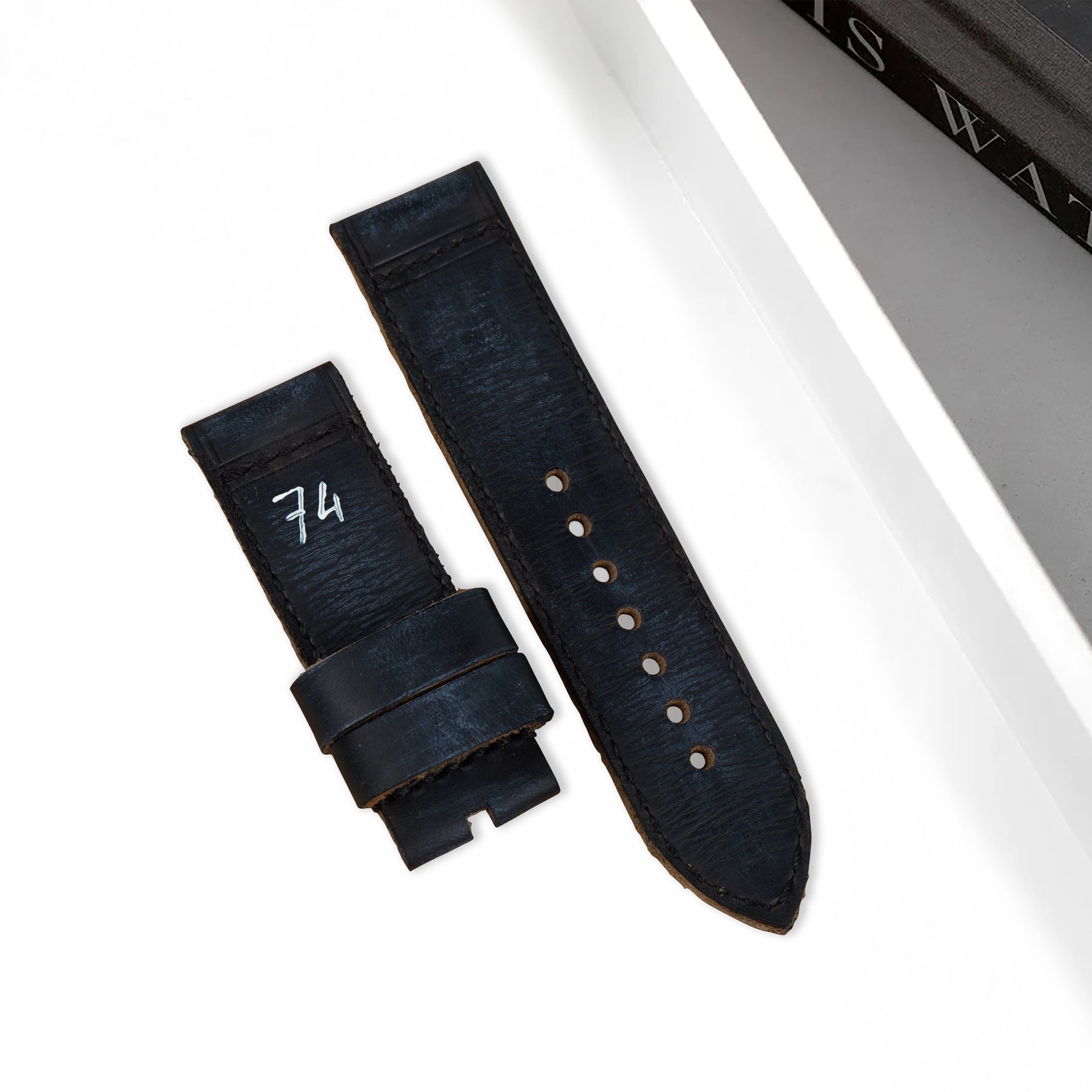 If you have a look through the Panerai Catalogue, the larger one, you will see a photo of a vintage 8-day Angelus Panerai wearing a Vintage strap with "74" marked on it. This will definitely lead to a nice wear and scrappy look to the strap over some time which will only enhance the overall look of this gorgeous strap. A really nice strap to set your watch apart from others, even if it’s not a Panerai!