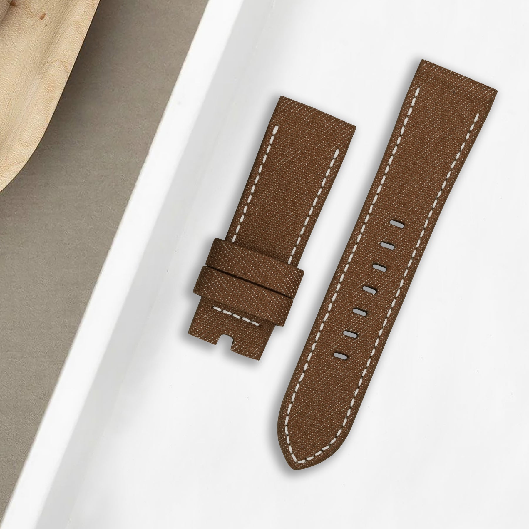 Description : Looking for something more eye-catching? Japanese Denim Oakwood brings contrast and clarity to your wrist. The earthy-brown denim tone combined with visible white stitch seams gives the strap a fresh, expressive look that stands out without being loud.