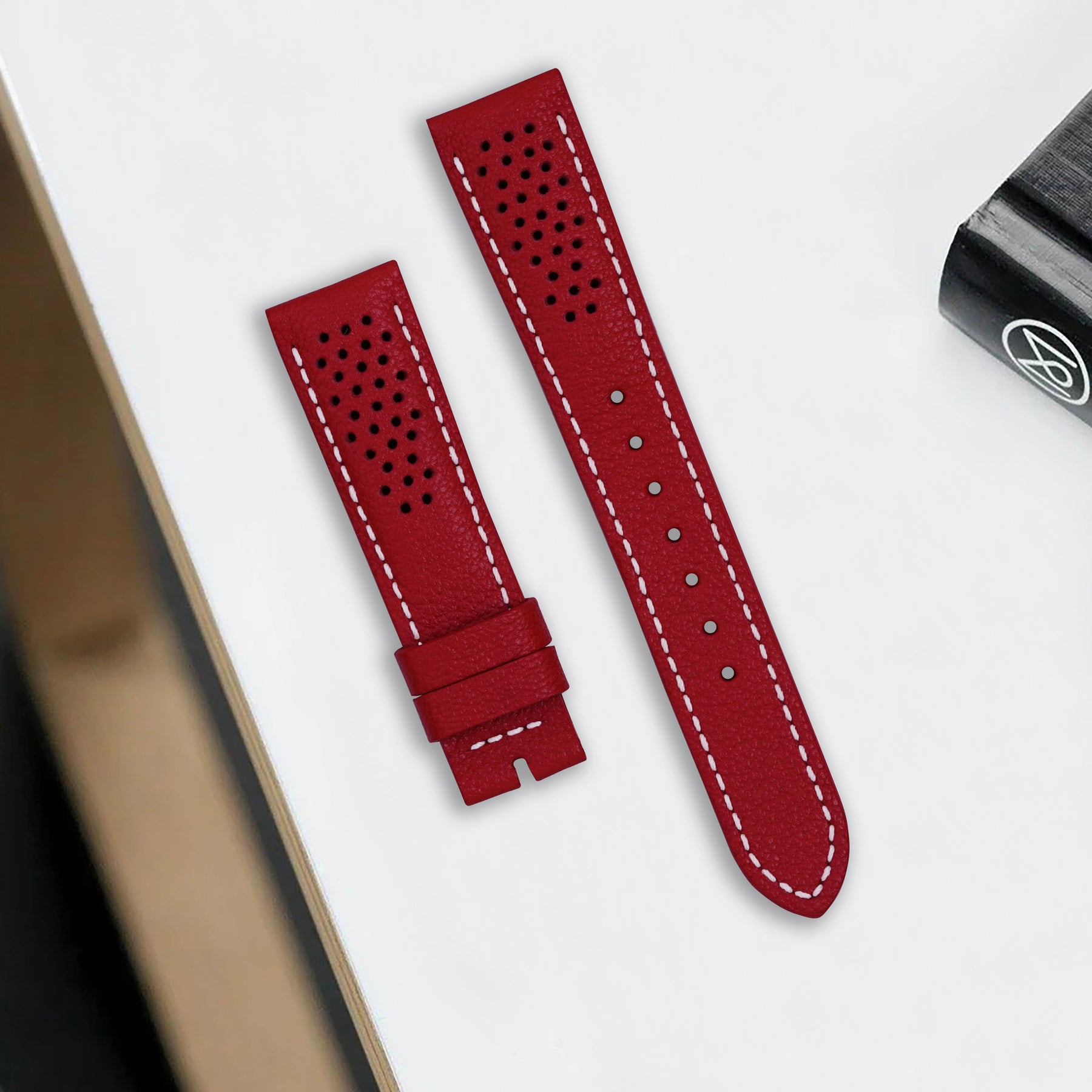 Description : Inspired by the sporty times of the 70’s, these racing straps are an essential to make any sport watch look even cooler. The holes make the strap lighter and more breathable, ideal for warm conditions where you want the comfy feel of a leather strap but don’t want the whole leather feel.