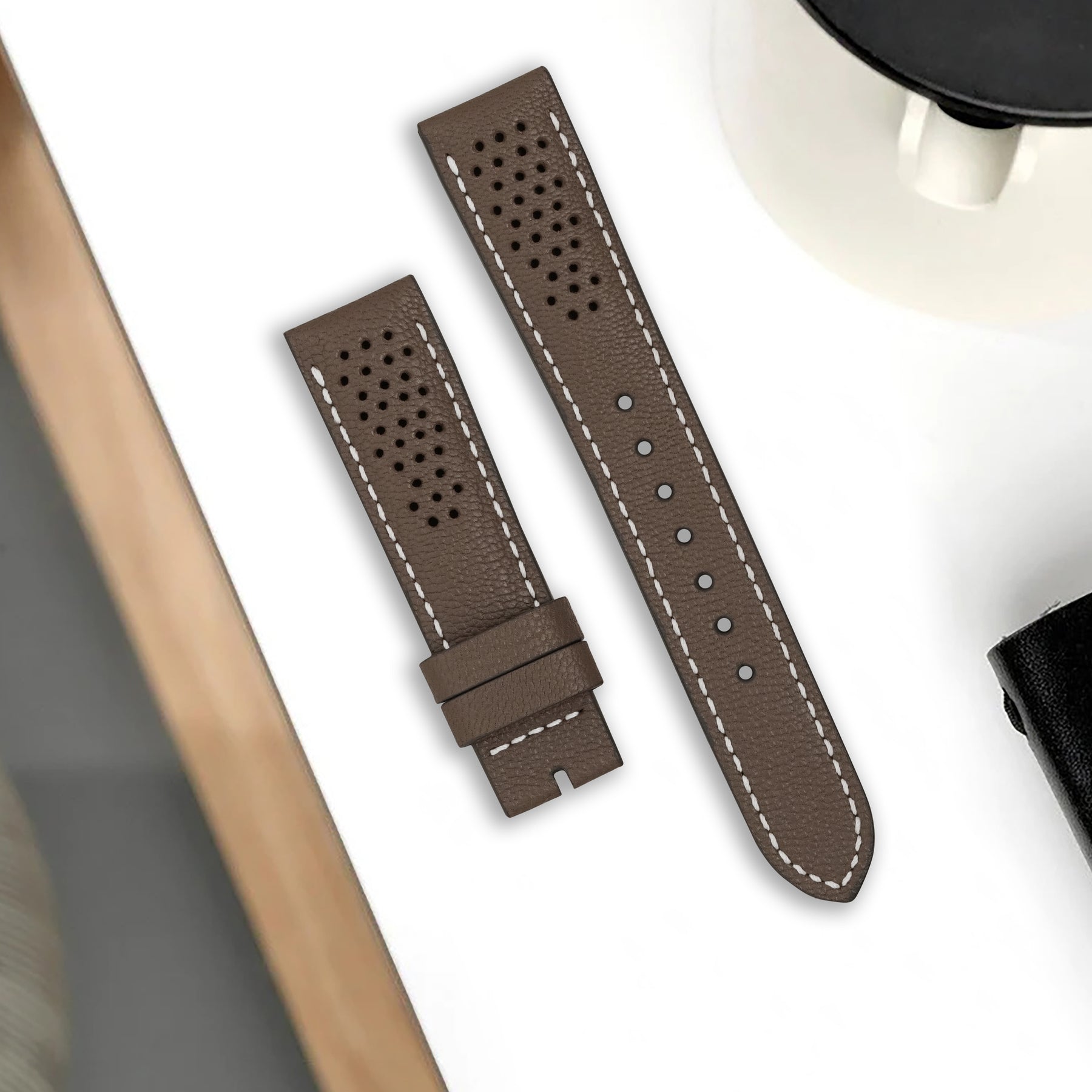 Description : Inspired by the sporty times of the 70’s, these racing straps are an essential to make any sport watch look even cooler. The holes make the strap lighter and more breathable, ideal for warm conditions where you want the comfy feel of a leather strap but don’t want the whole leather feel.