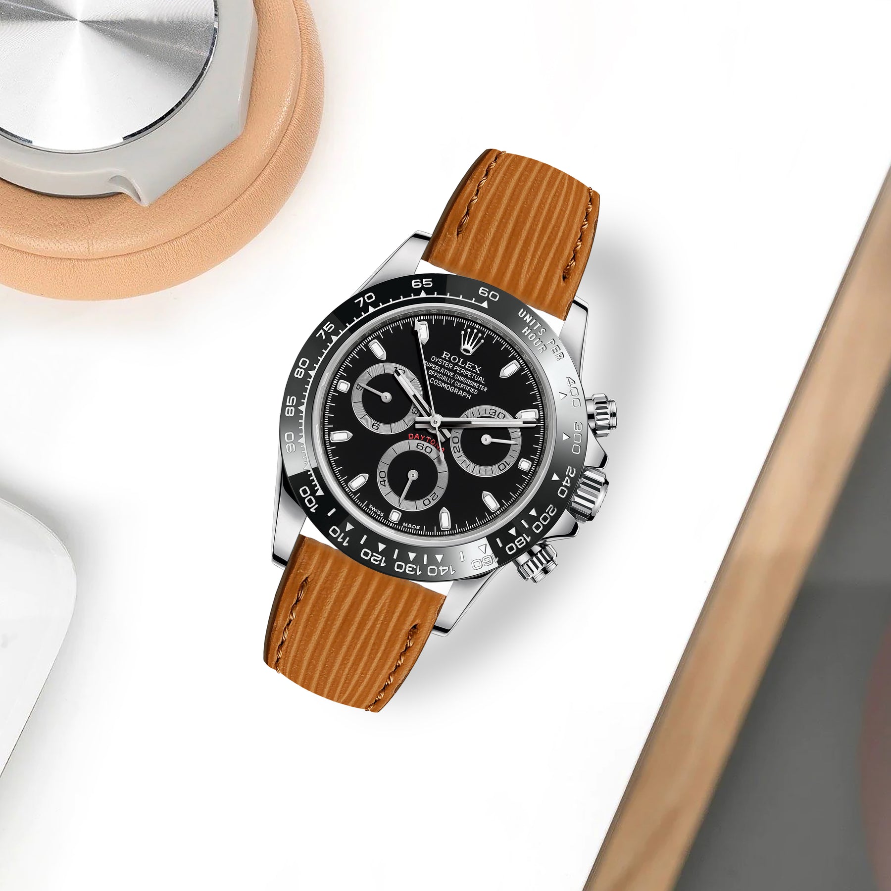 Sourced from the most prestigious Europe tanneries, boasts a distinctive texture that sets it apart. Available in a palette of sophisticated hues, our Epi serie cater to diverse tastes and preferences. From classic deep hues exudes understated luxury to rich vibrant tones that make a bold statement, there's a strap to complement every style and occasion. Whether paired with a classic dress watch or a vintage timepiece, these Epi serie effortlessly elevate your wrist game.