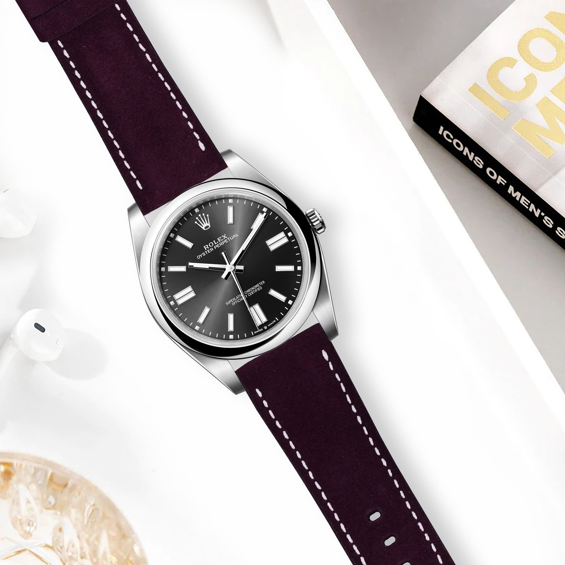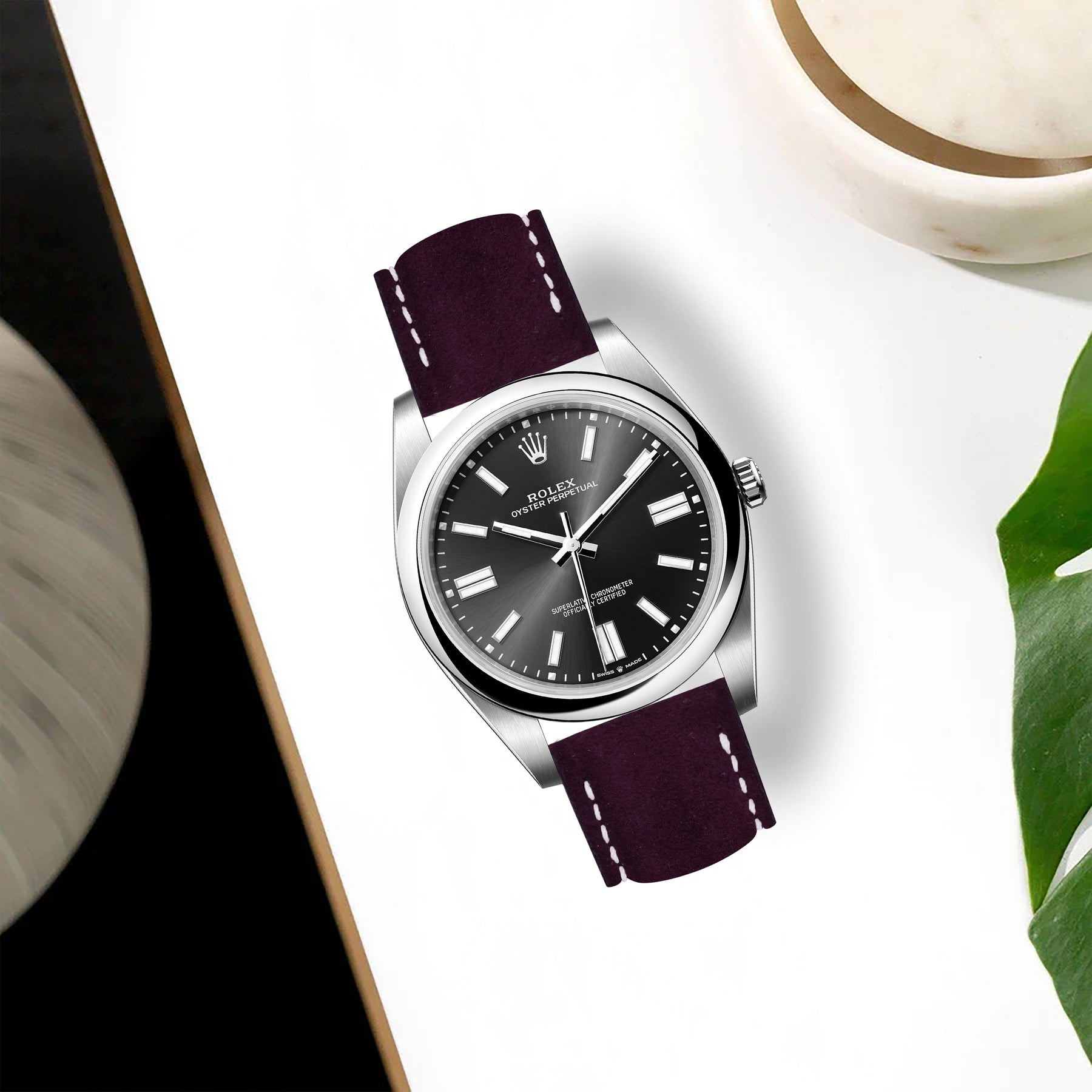 Rolex Oyster Perpetual Straps - Suede Wine