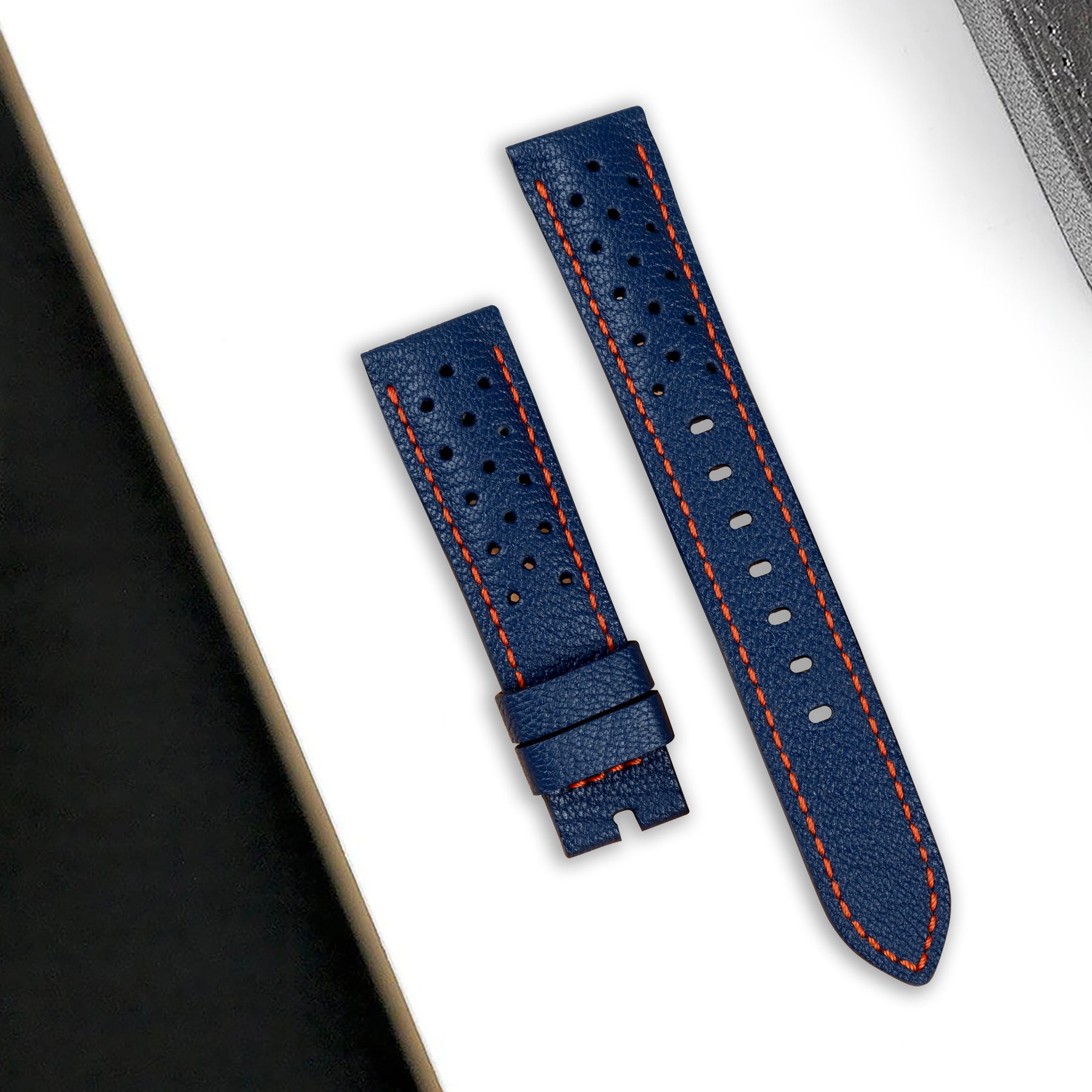 Description : Inspired by the sporty times of the 70’s, these racing straps are an essential to make any sport watch look even cooler. The holes make the strap lighter and more breathable, ideal for warm conditions where you want the comfy feel of a leather strap but don’t want the whole leather feel.