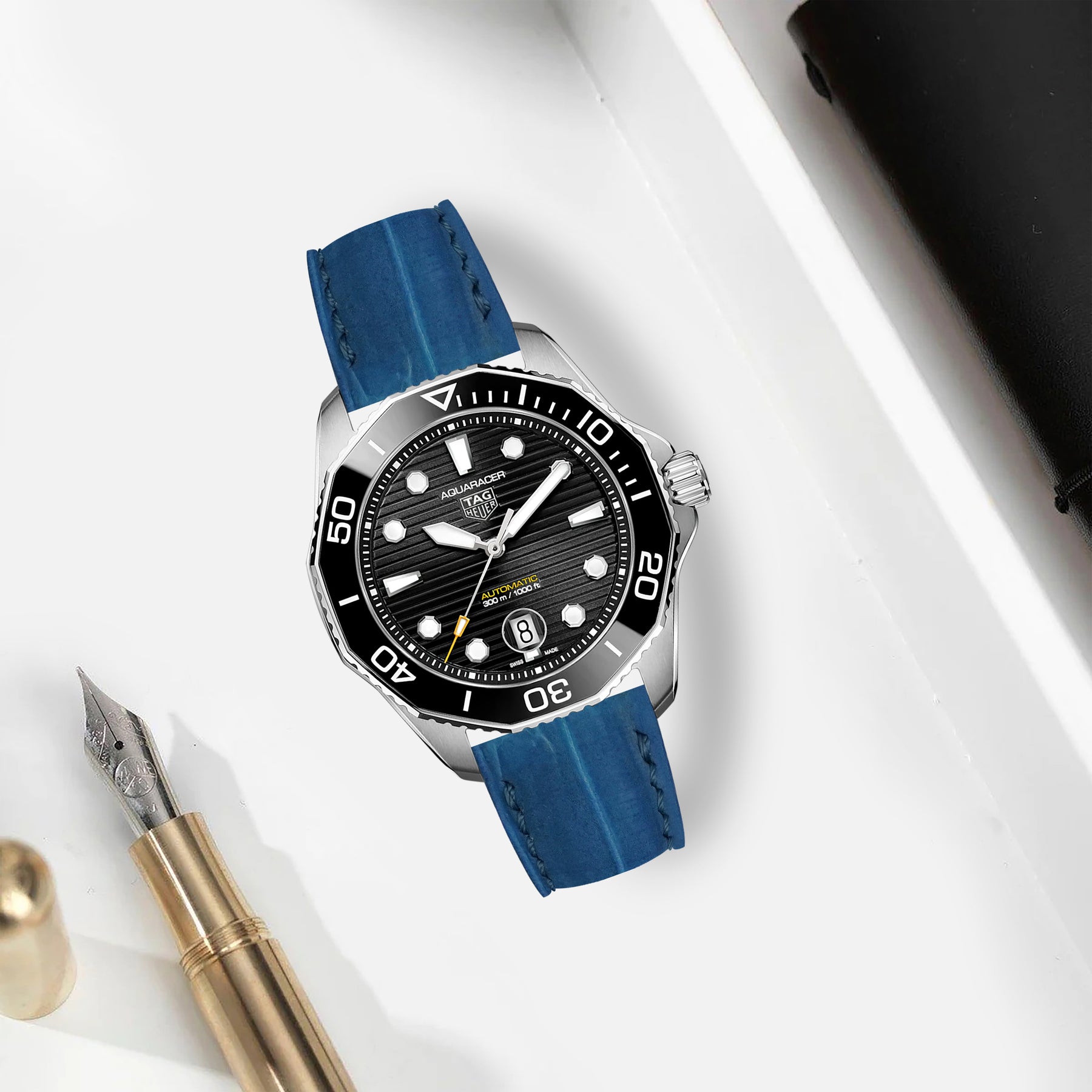 Tag Heuer Aquaracer Straps - Croco Nubuck Blue
