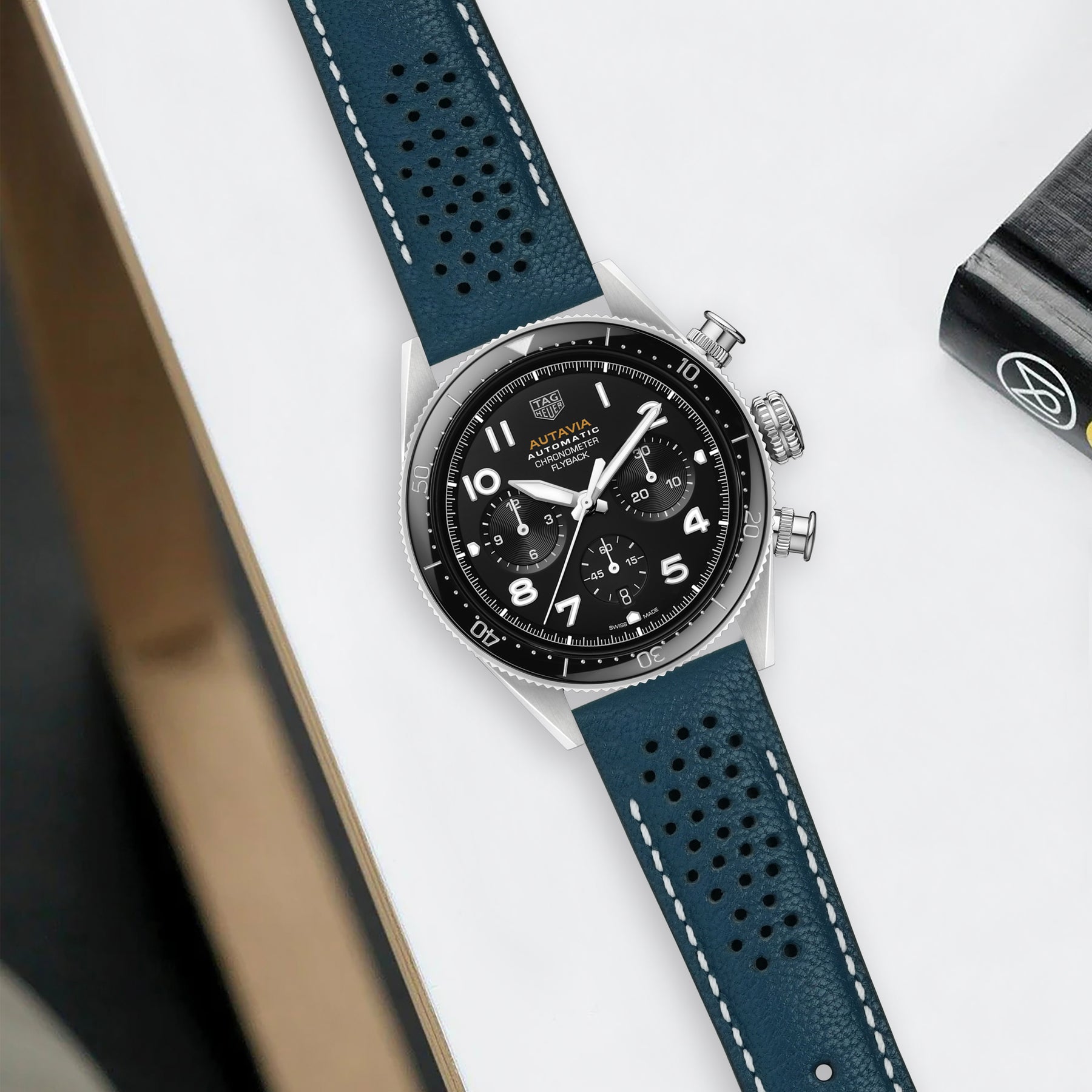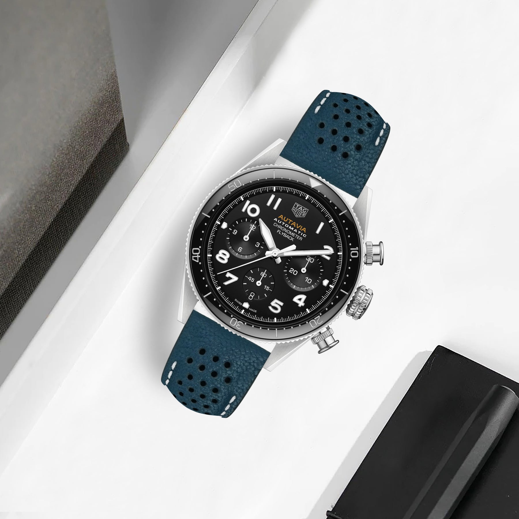 Description : Inspired by the sporty times of the 70’s, these racing straps are an essential to make any sport watch look even cooler. The holes make the strap lighter and more breathable, ideal for warm conditions where you want the comfy feel of a leather strap but don’t want the whole leather feel.