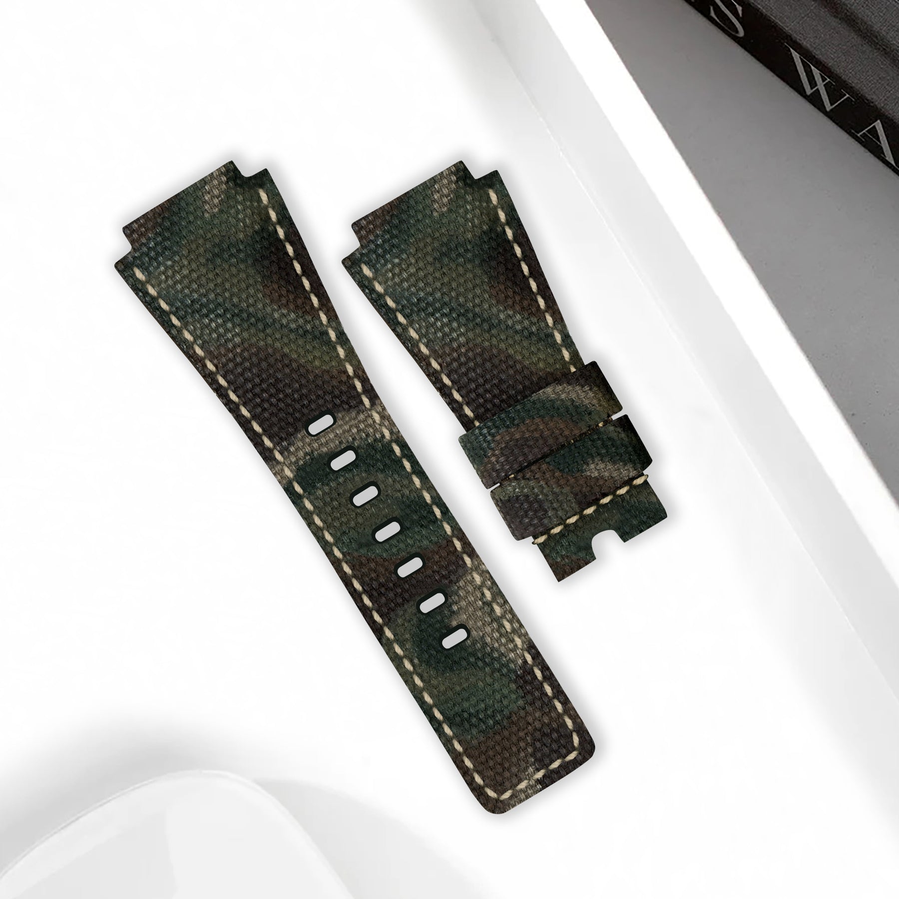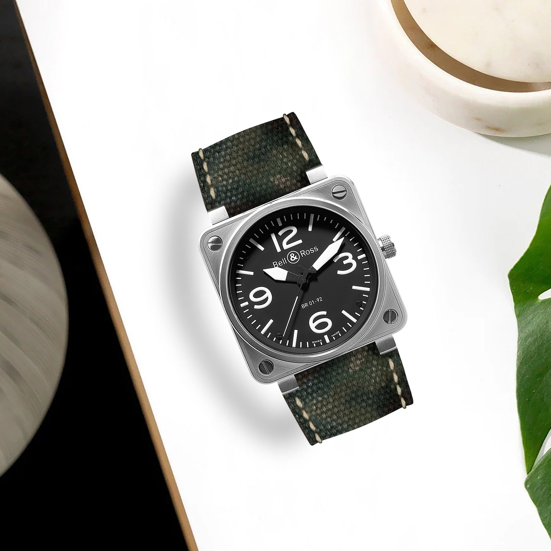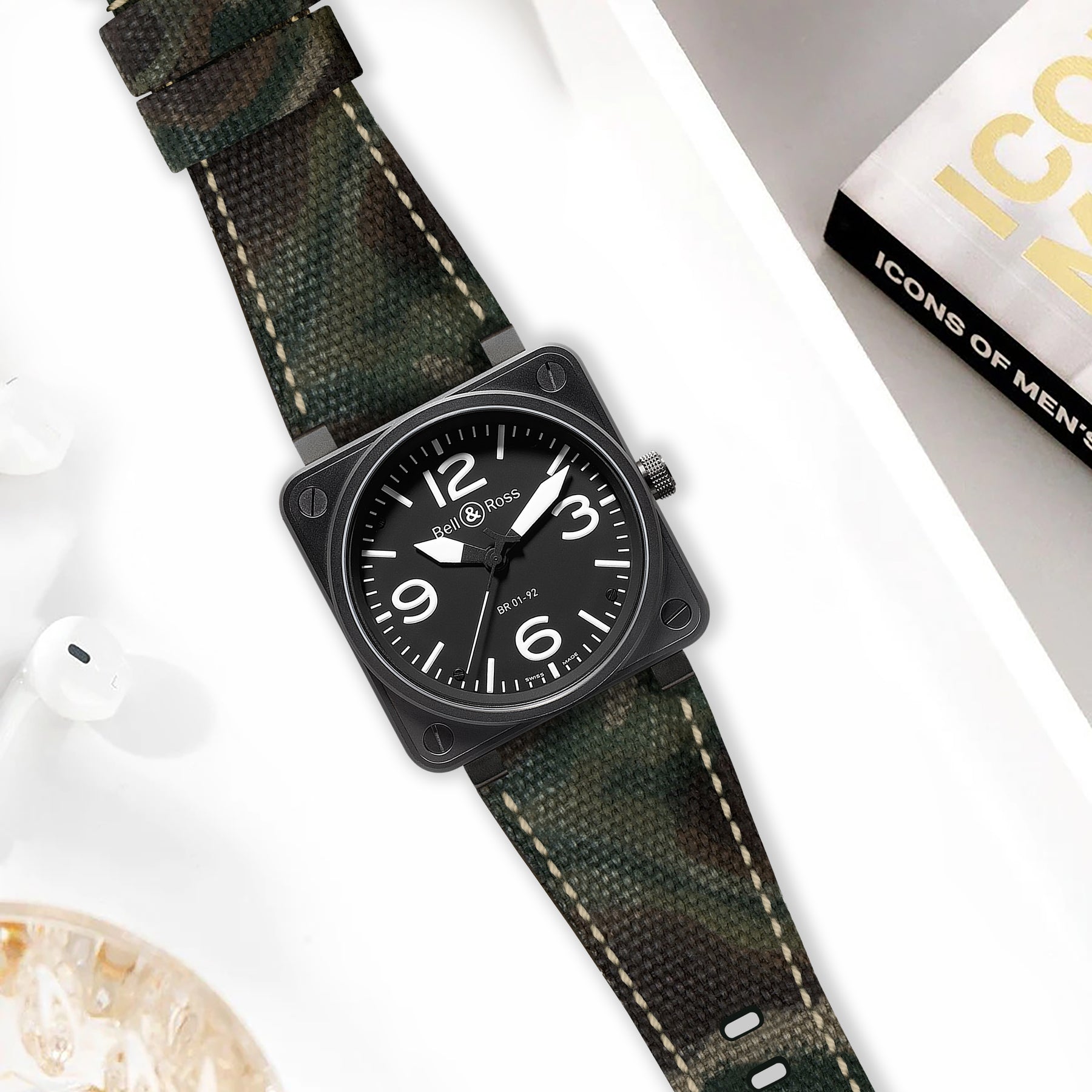 Description : Bell & Ross watches feature an unconventional design, that's why we wanted to get the same for our Canvas Camouflage straps. With precision engineering to match the unique dimensions of the BR 01, BR 02, BR 03, X and S models, this strap ensures a seamless fit with the square-shaped that defines Bell & Ross.