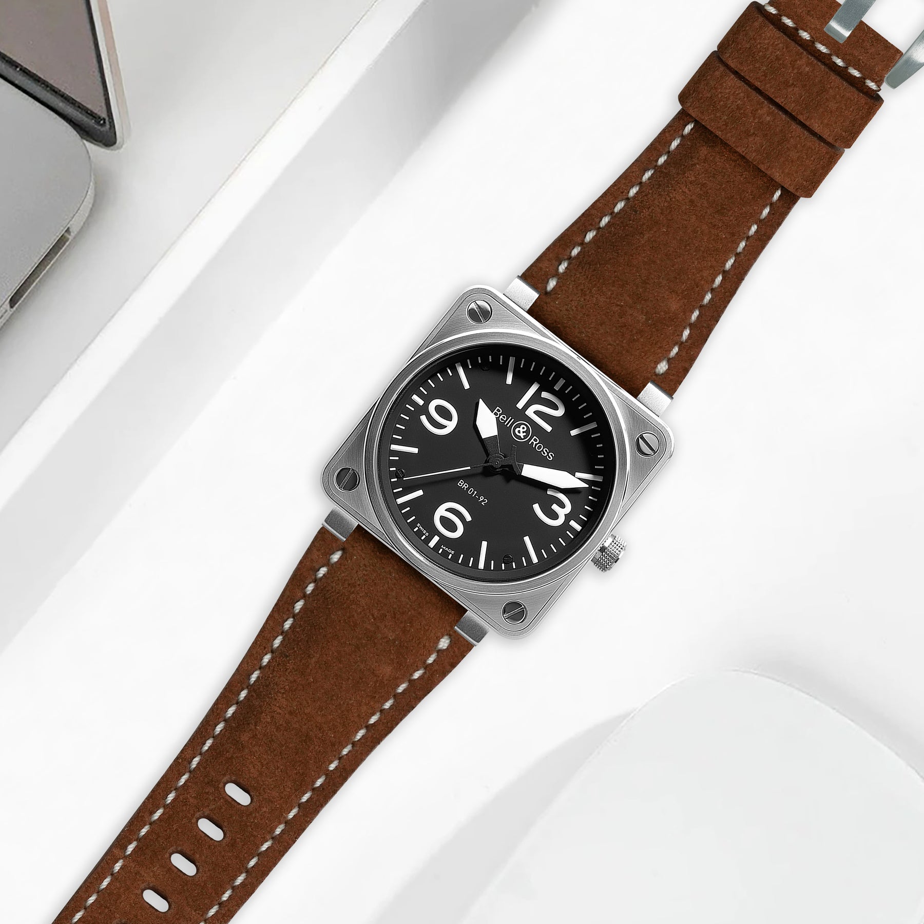 Bell Ross 01, 02, 03, BR X, BR S Straps - Suede Brown