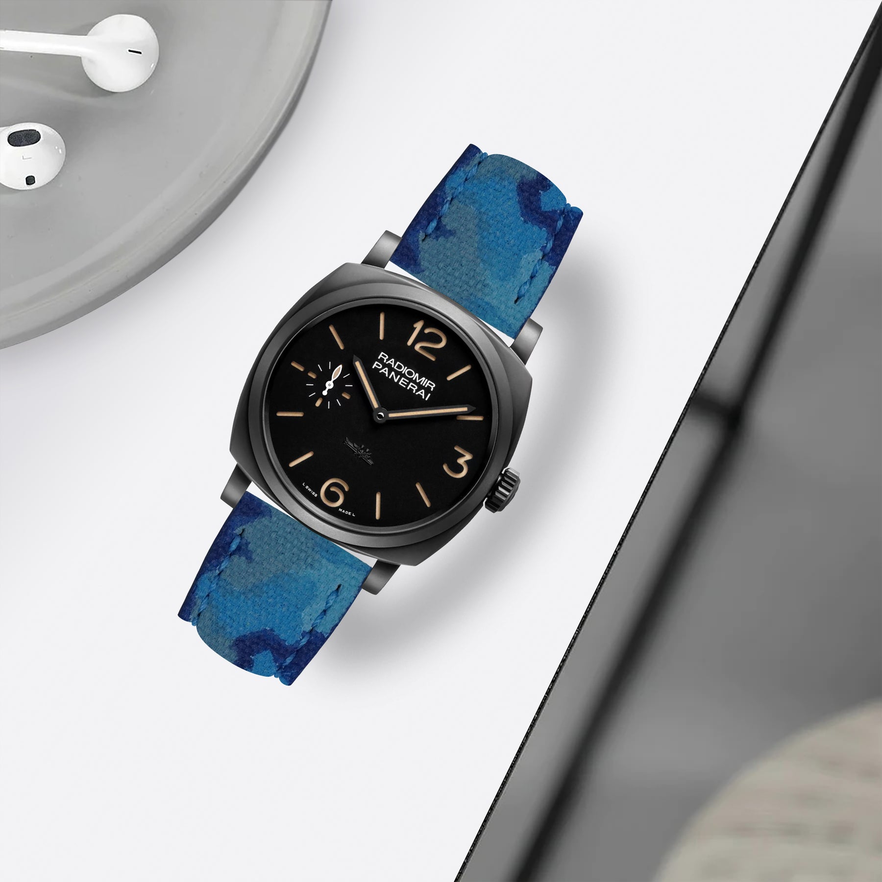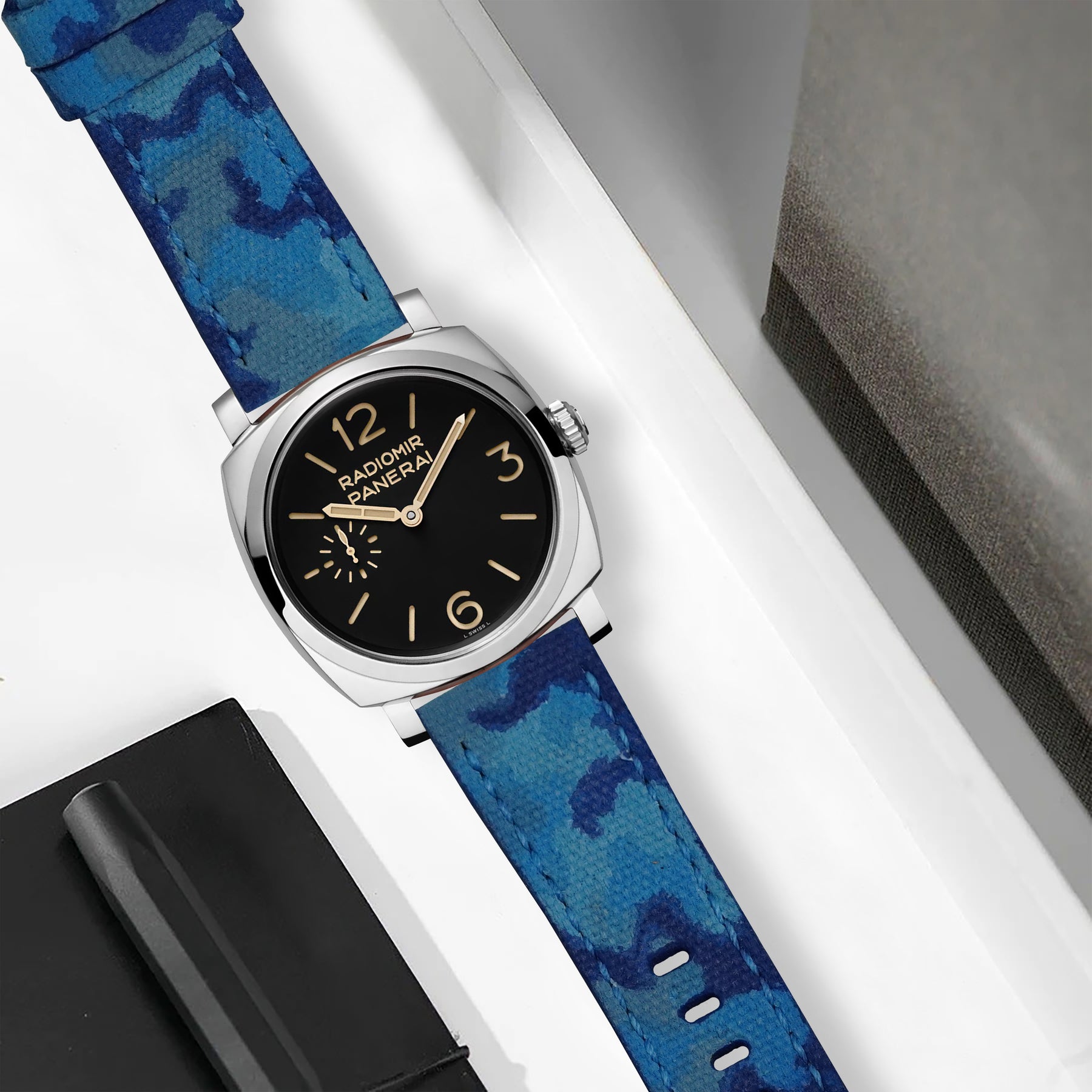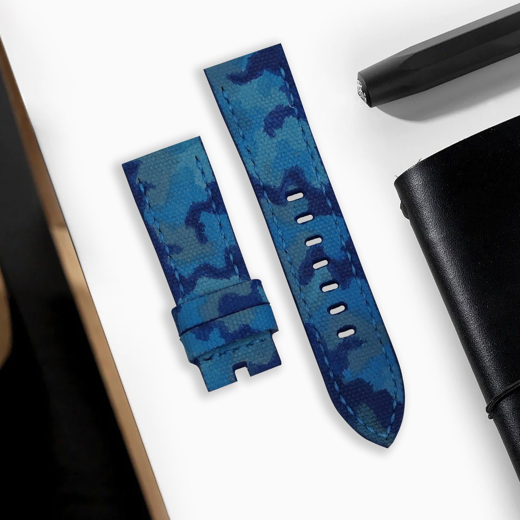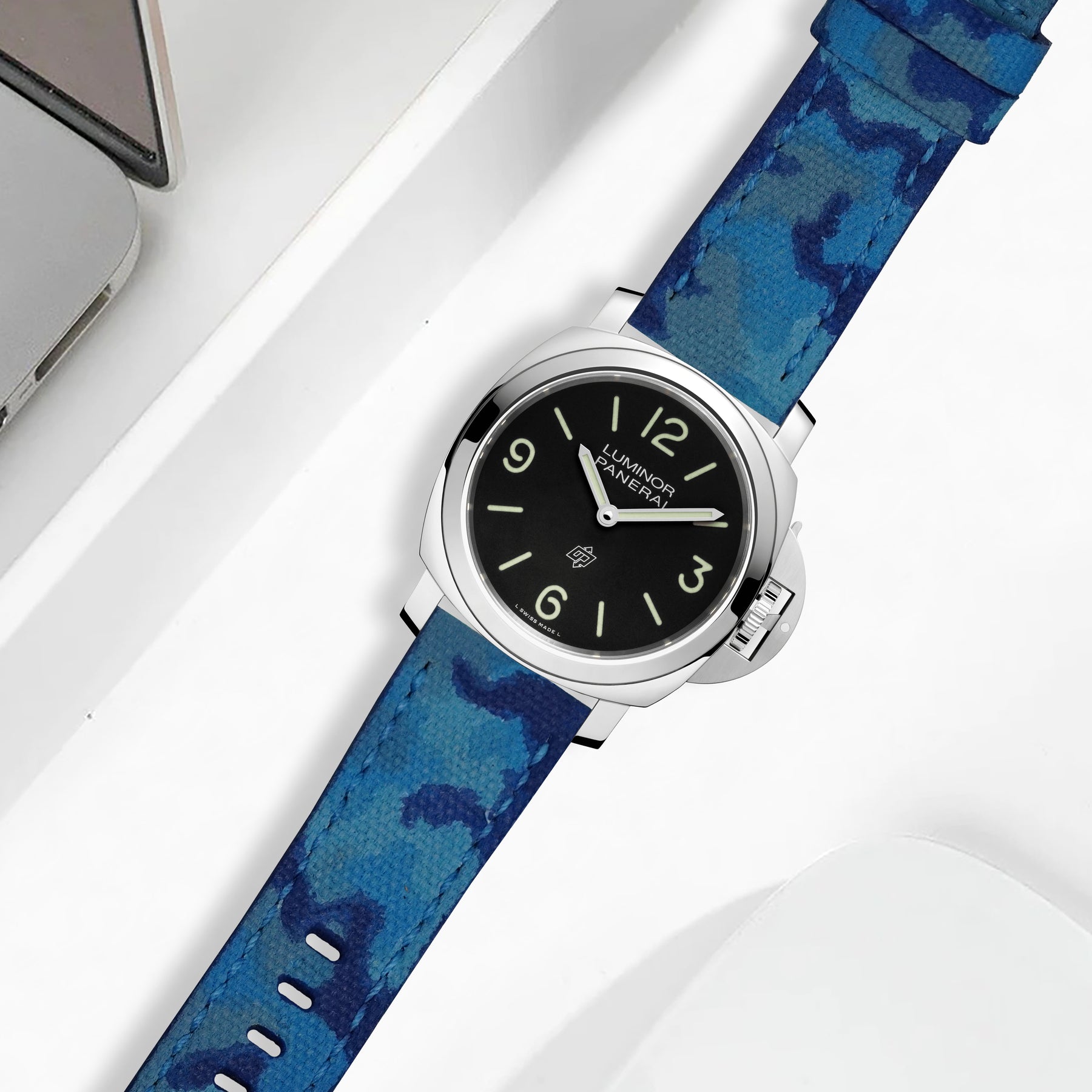 A beautifully camouflaged strap, Camou Blu Acqua is another strap perfect for rough conditions. The camouflage design is perfect for outdoor enthusiasts, military personnel and anyone who appreciates a distinctive and adventurous look. The matching blue camou stitching enhances the overall aesthetic, creating a seamless and cohesive appearance.