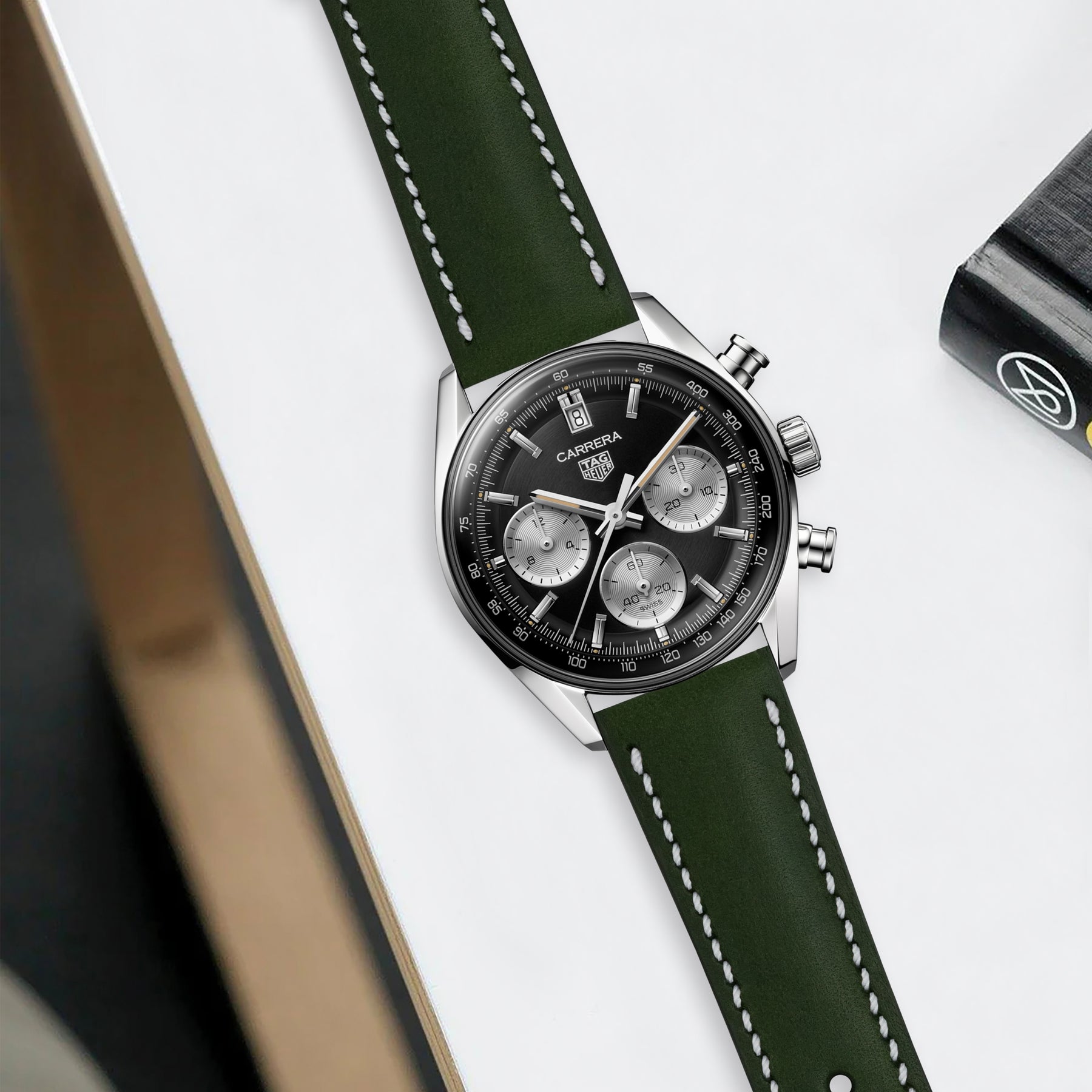 This leather is well-known for its soft feel and ability to develop a rich patina, adding character and depth the more you wear it. The smooth texture gives your watch an elegant look without being overly formal, making it suitable for both professional and casual settings.