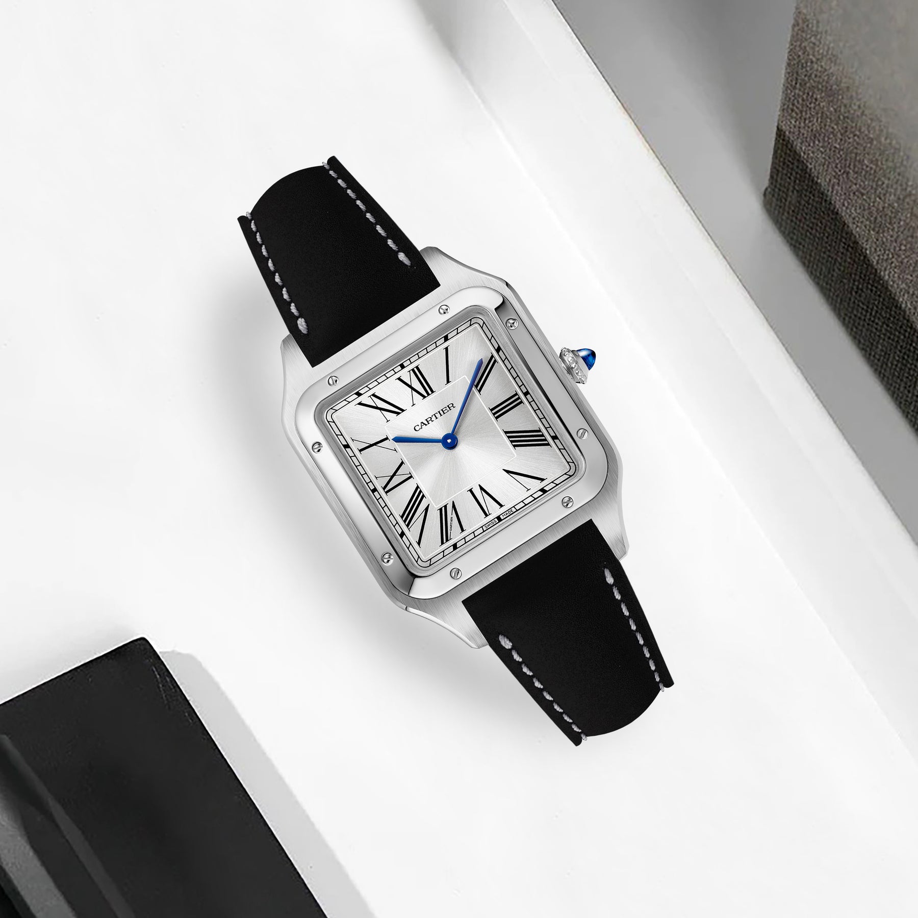 Description : Introducing the new addition to the Cartier Santos-Dumont collection. Cordovan leather watch strap designed exclusively for Santos Dumont feature Quick-switch system using the same metal adapters and comes with a quick release spring bar to provide a flush fit for the Cartier Santos-Dumont without any lug overhang. Unlike the Santos line-up, this collection was made to only fit straps, not bracelets. With its slim case and classy look, it was a very dressy watch that worked well on a range of straps.