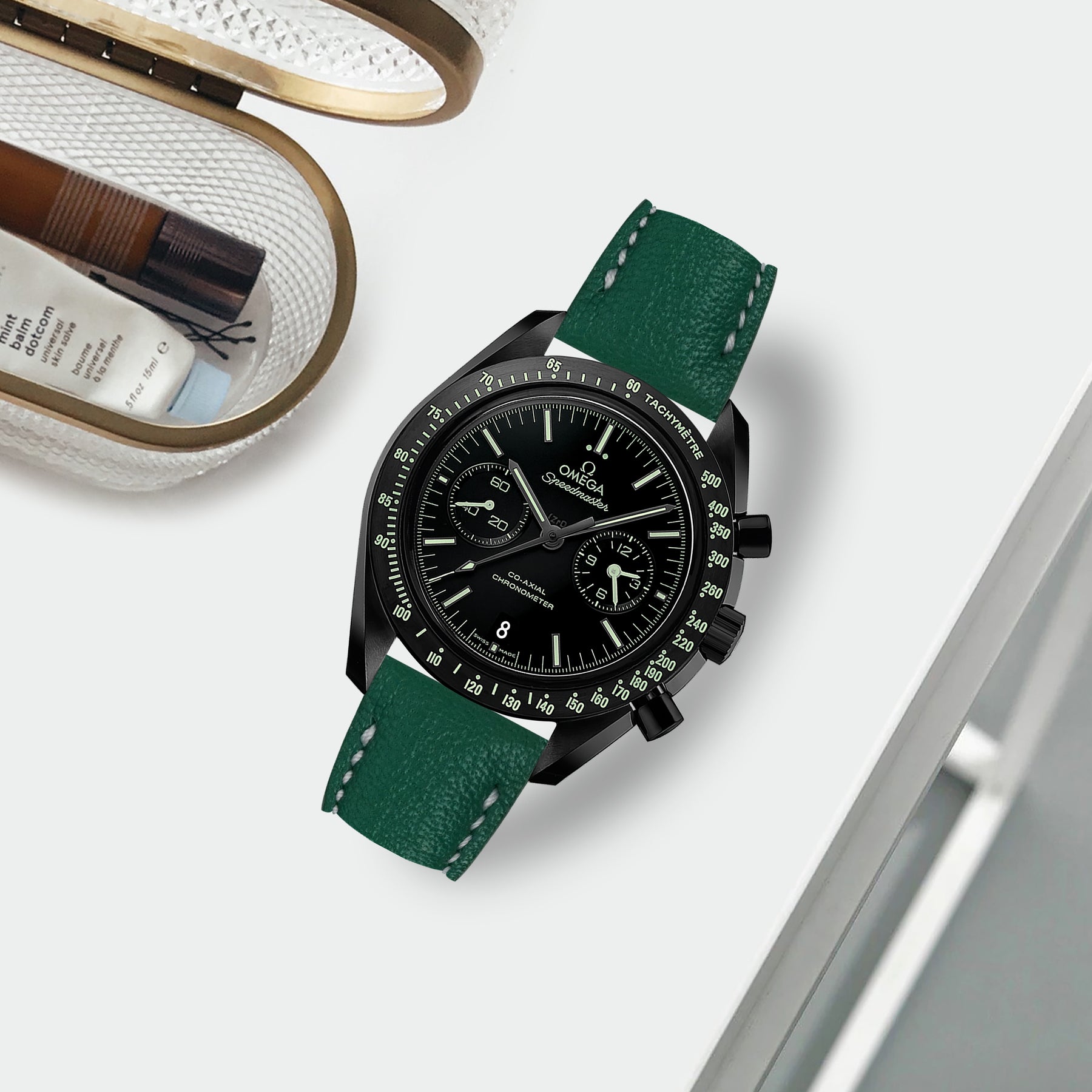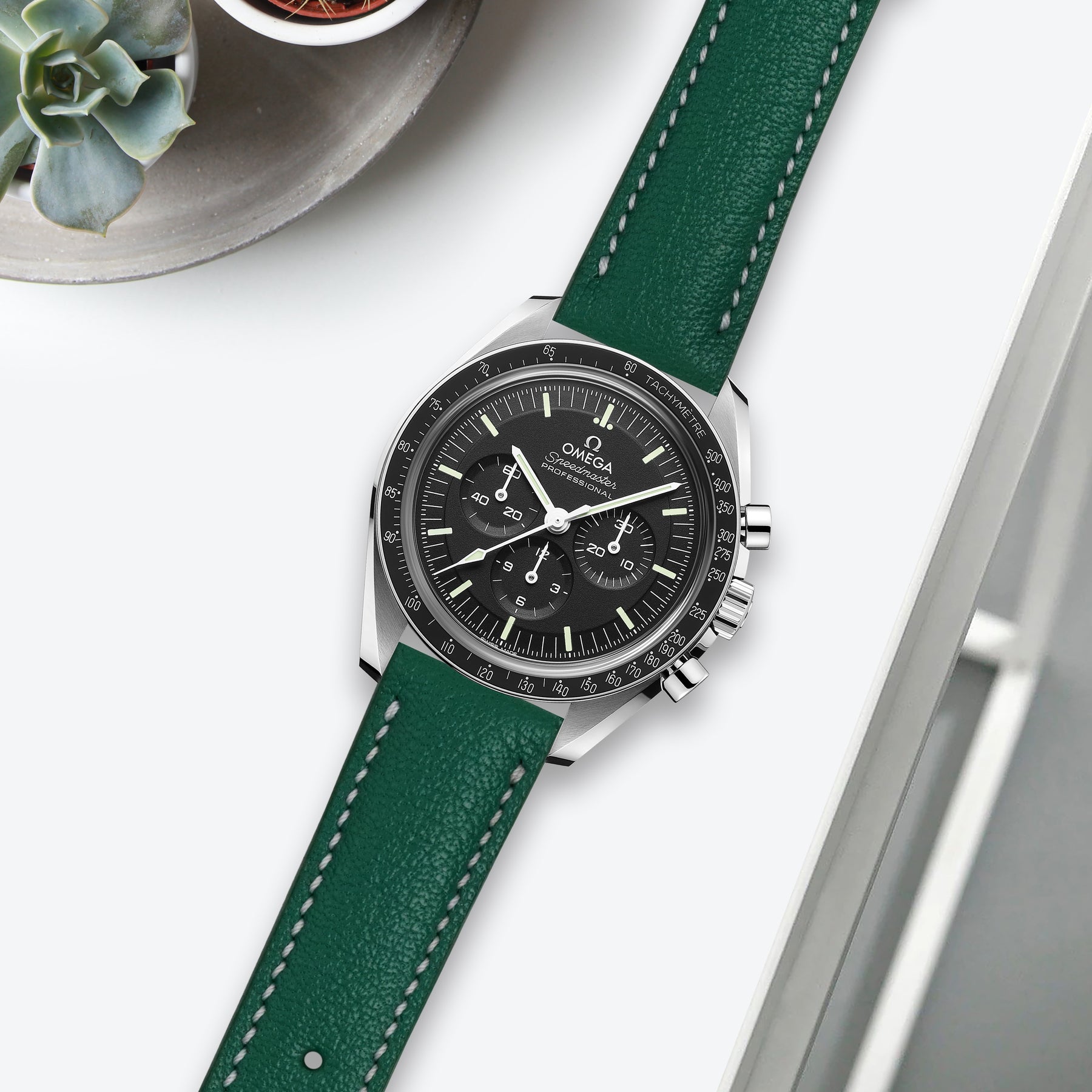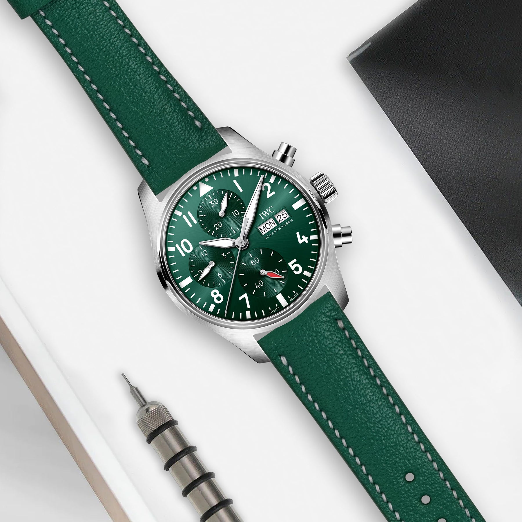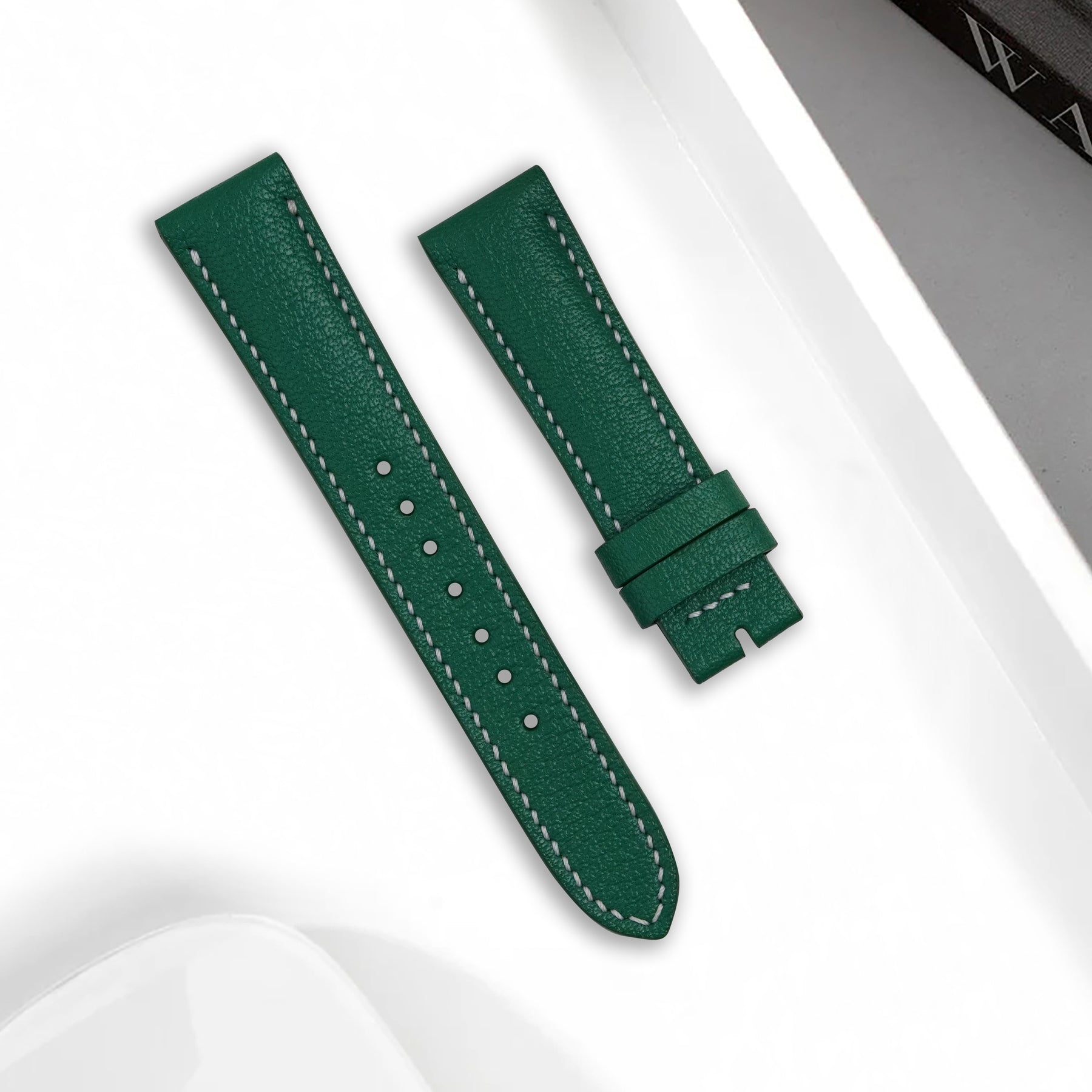 Chevre is immediately recognisable from its texture and grain. A smooth surface and a slight gloss immediately imparts luxuriousness to products made with this leather. Not only a feast for the eyes, chevre is also strongly water and scratch-resistant, and is a great option for daily wear watch straps.