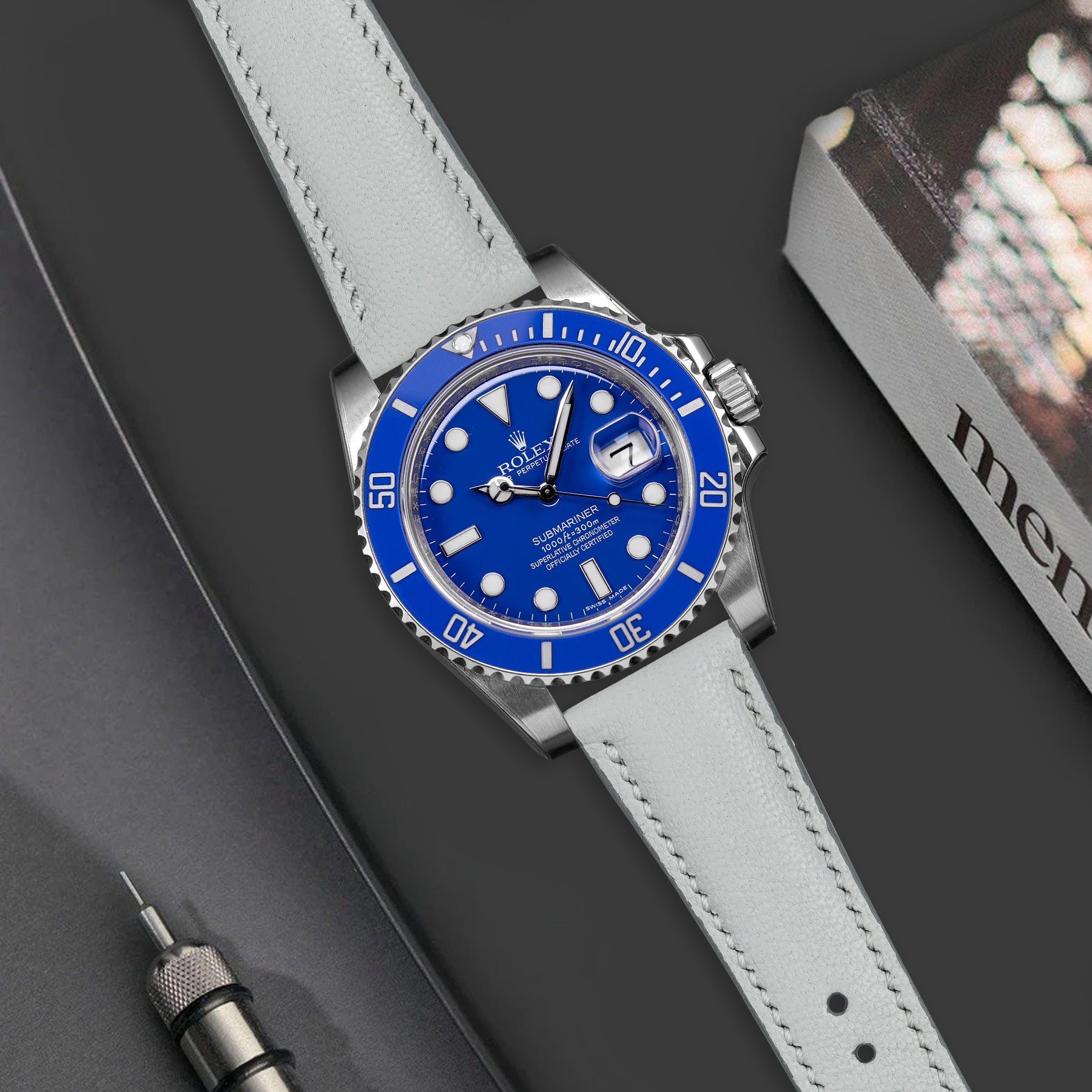 Chevre is immediately recognisable from its texture and grain. A smooth surface and a slight gloss immediately imparts luxuriousness to products made with this leather. Not only a feast for the eyes, chevre is also strongly water and scratch-resistant, and is a great option for daily wear watch straps.