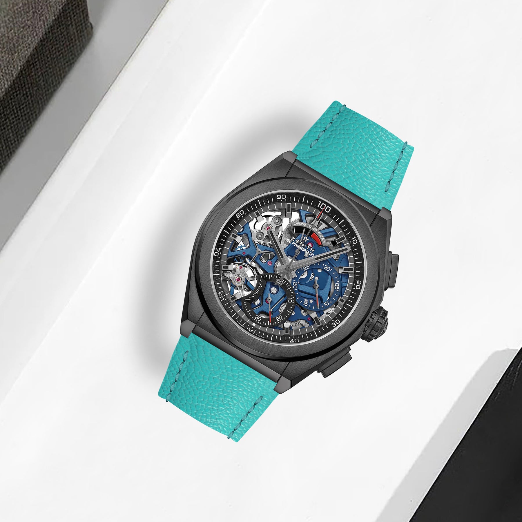 Description : Zenith Defy is built with a bold, futuristic architecture and we wanted our straps to reflect the same spirit — modern, technical and unmistakably refined. Crafted to our exact specifications and engineered to follow the unique dimensions of the Defy case, each strap features a seamless curved-end fit that sits perfectly against the watch, creating a clean, integrated look that feels as natural as the original design.