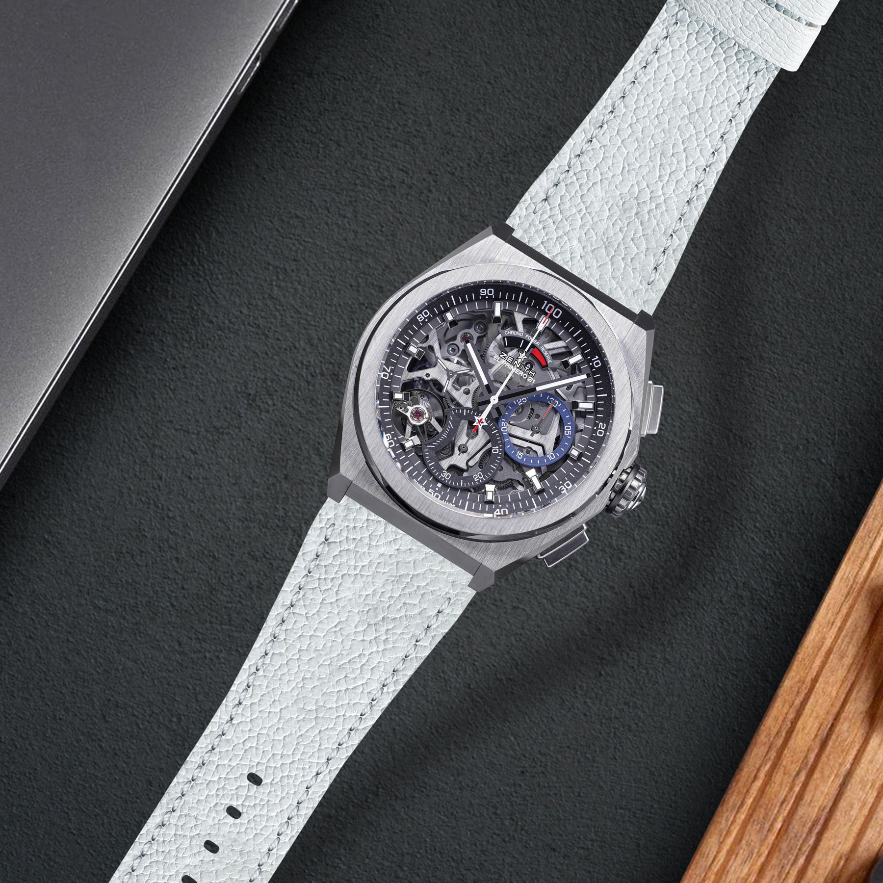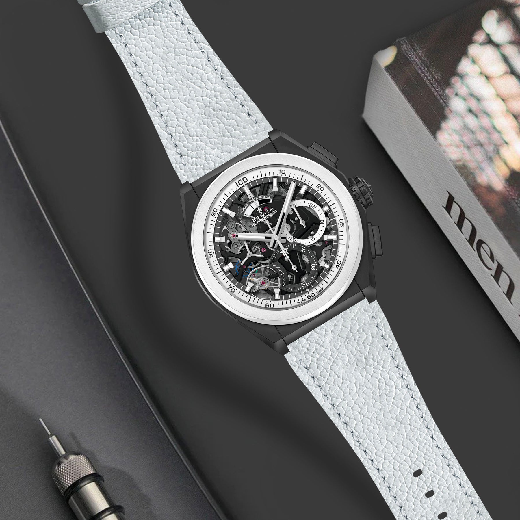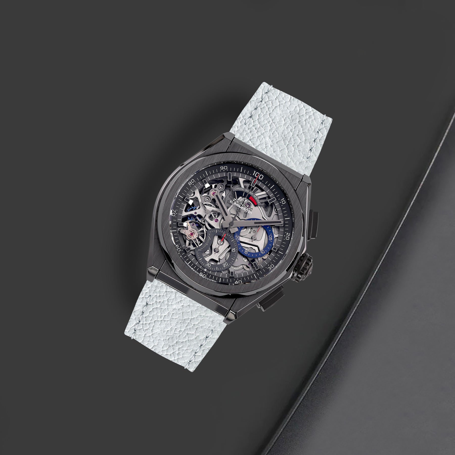 Description : Zenith Defy is built with a bold, futuristic architecture and we wanted our straps to reflect the same spirit — modern, technical and unmistakably refined. Crafted to our exact specifications and engineered to follow the unique dimensions of the Defy case, each strap features a seamless curved-end fit that sits perfectly against the watch, creating a clean, integrated look that feels as natural as the original design.