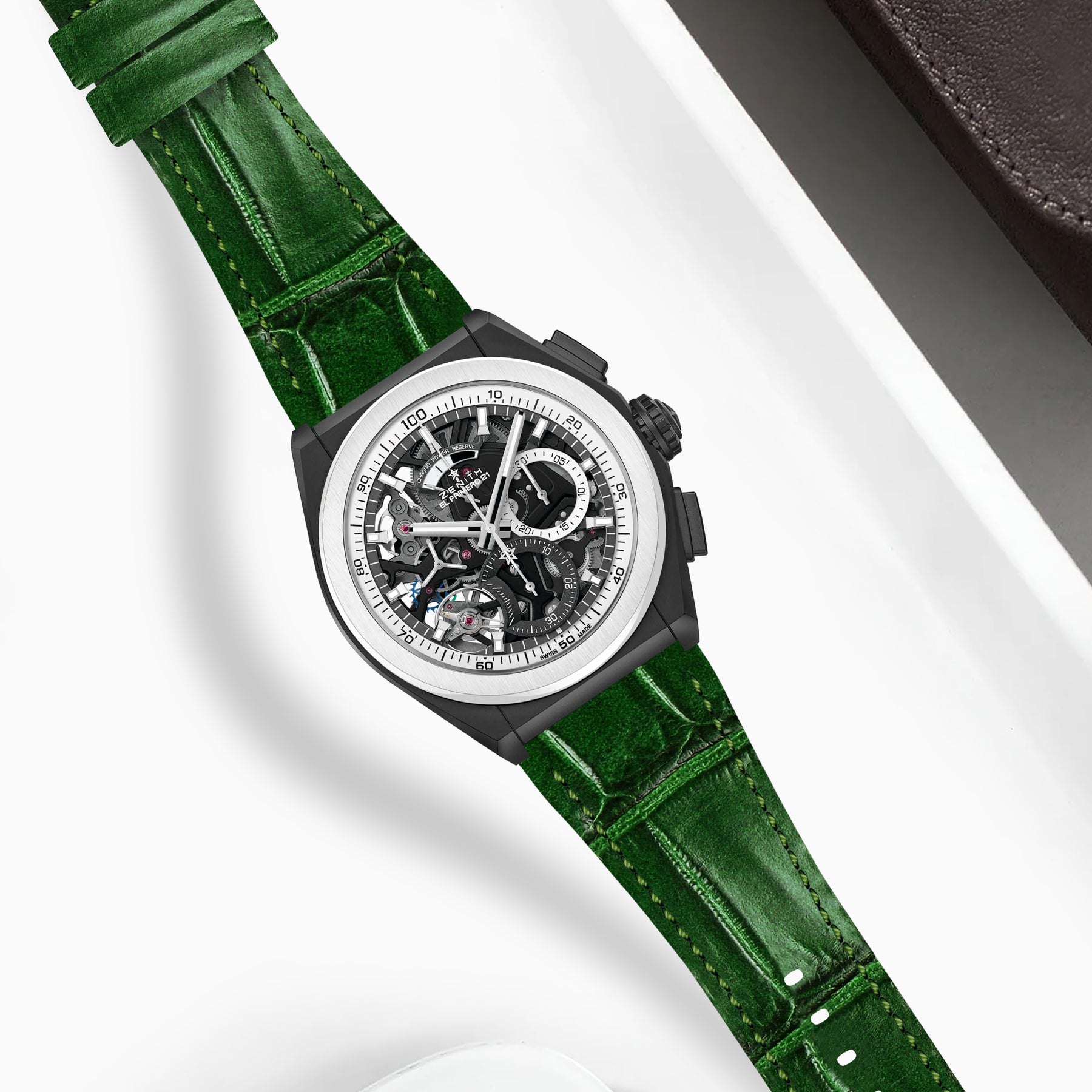 Our Croco straps are made from the center section of the belly, known for its beautifully uniform, square scales—structured, refined, and instantly recognizable. This is the strap that takes your Defy from modern sporty to elevated statement, working just as effortlessly with a tailored look as it does with jeans and weekend mode. Available in a range of colors, you can choose the one that best suits your watch, your outfit, and your mood.
