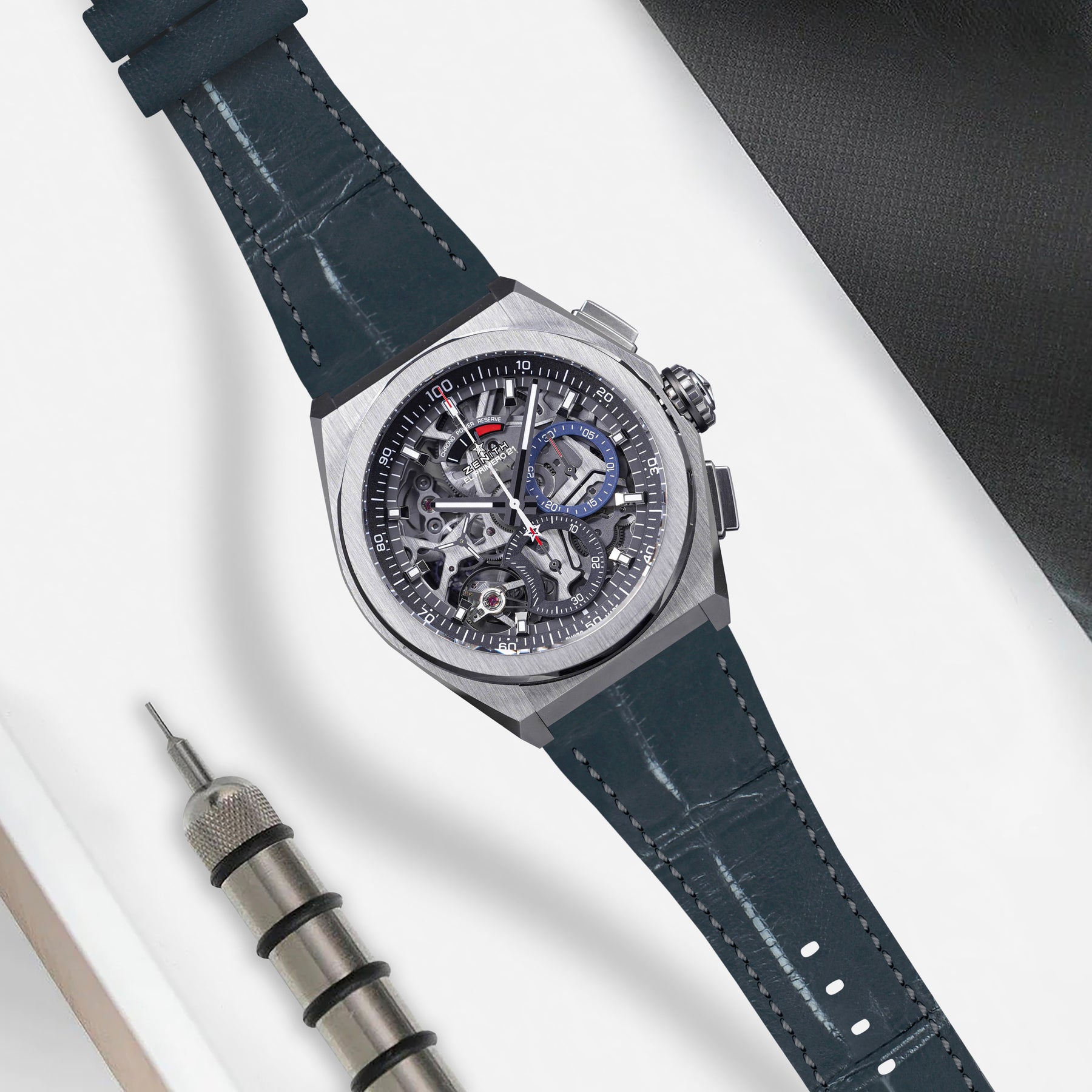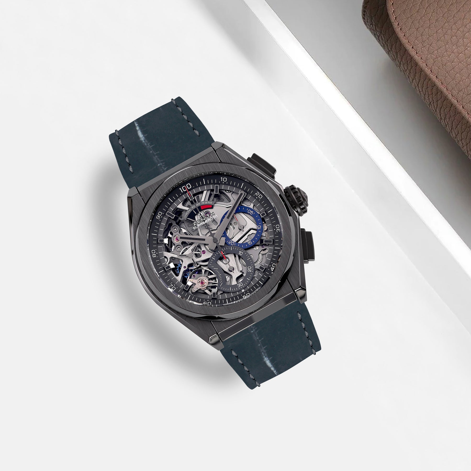 Description : Zenith Defy is built with a bold, futuristic architecture and we wanted our straps to reflect the same spirit — modern, technical and unmistakably refined. Crafted to our exact specifications and engineered to follow the unique dimensions of the Defy case, each strap features a seamless curved-end fit that sits perfectly against the watch, creating a clean, integrated look that feels as natural as the original design.