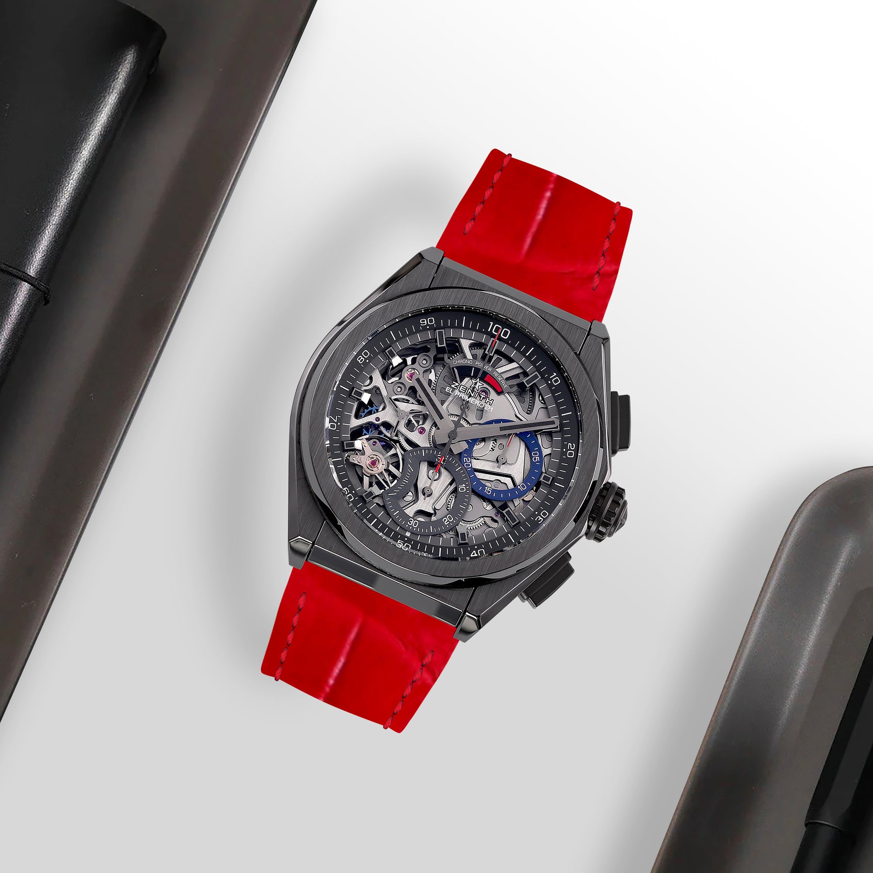 Description : Zenith Defy is built with a bold, futuristic architecture and we wanted our straps to reflect the same spirit — modern, technical and unmistakably refined. Crafted to our exact specifications and engineered to follow the unique dimensions of the Defy case, each strap features a seamless curved-end fit that sits perfectly against the watch, creating a clean, integrated look that feels as natural as the original design.
