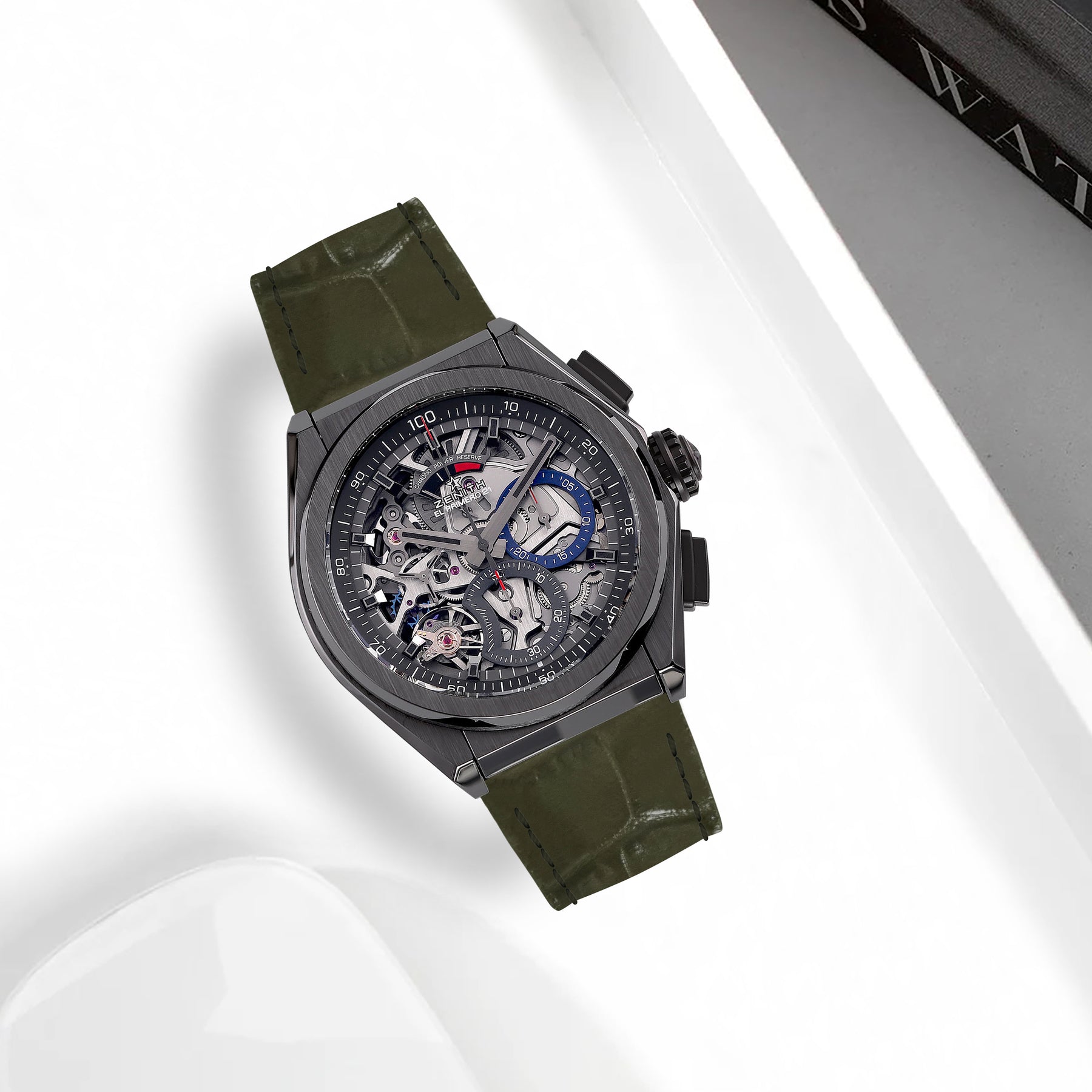 Description : Zenith Defy is built with a bold, futuristic architecture and we wanted our straps to reflect the same spirit — modern, technical and unmistakably refined. Crafted to our exact specifications and engineered to follow the unique dimensions of the Defy case, each strap features a seamless curved-end fit that sits perfectly against the watch, creating a clean, integrated look that feels as natural as the original design.