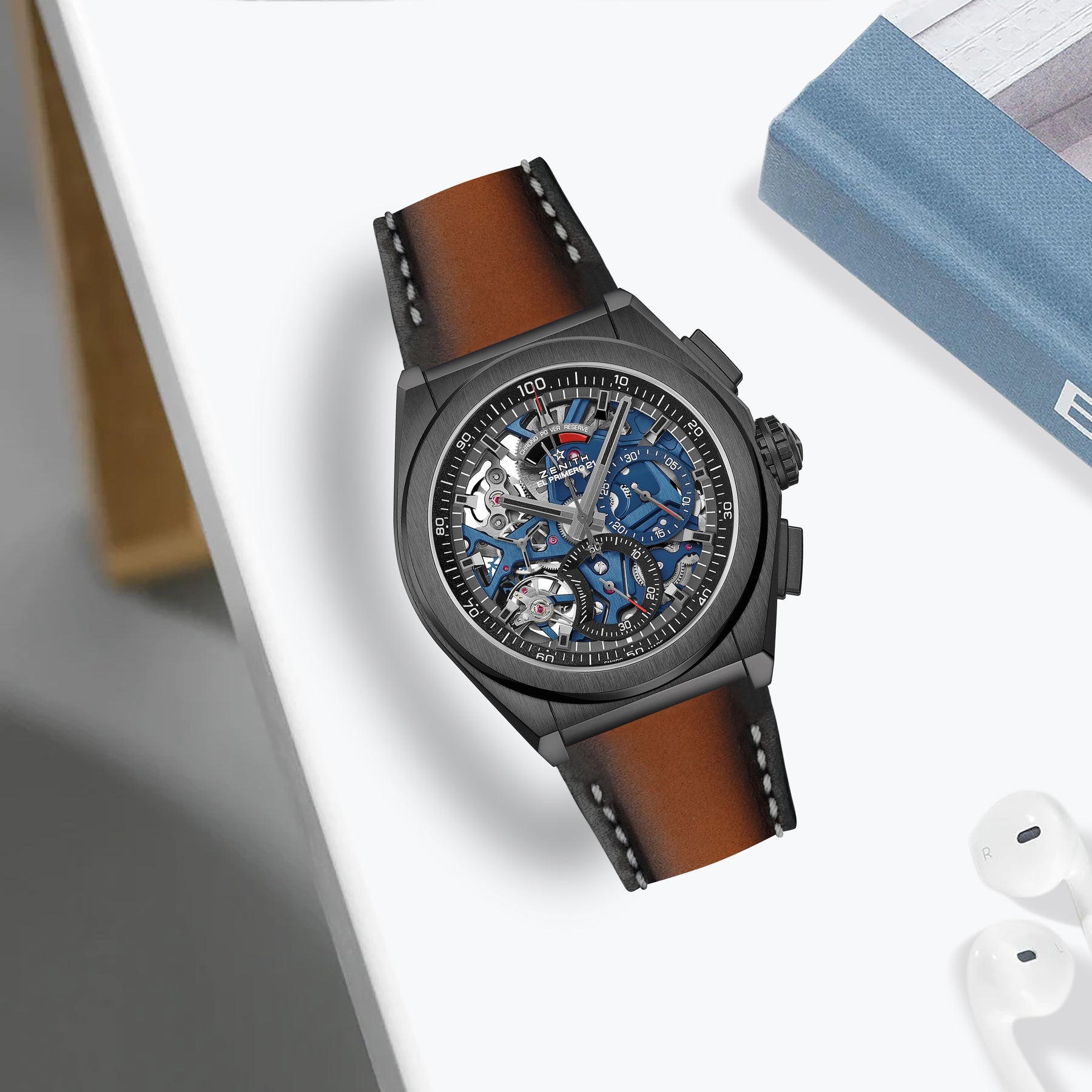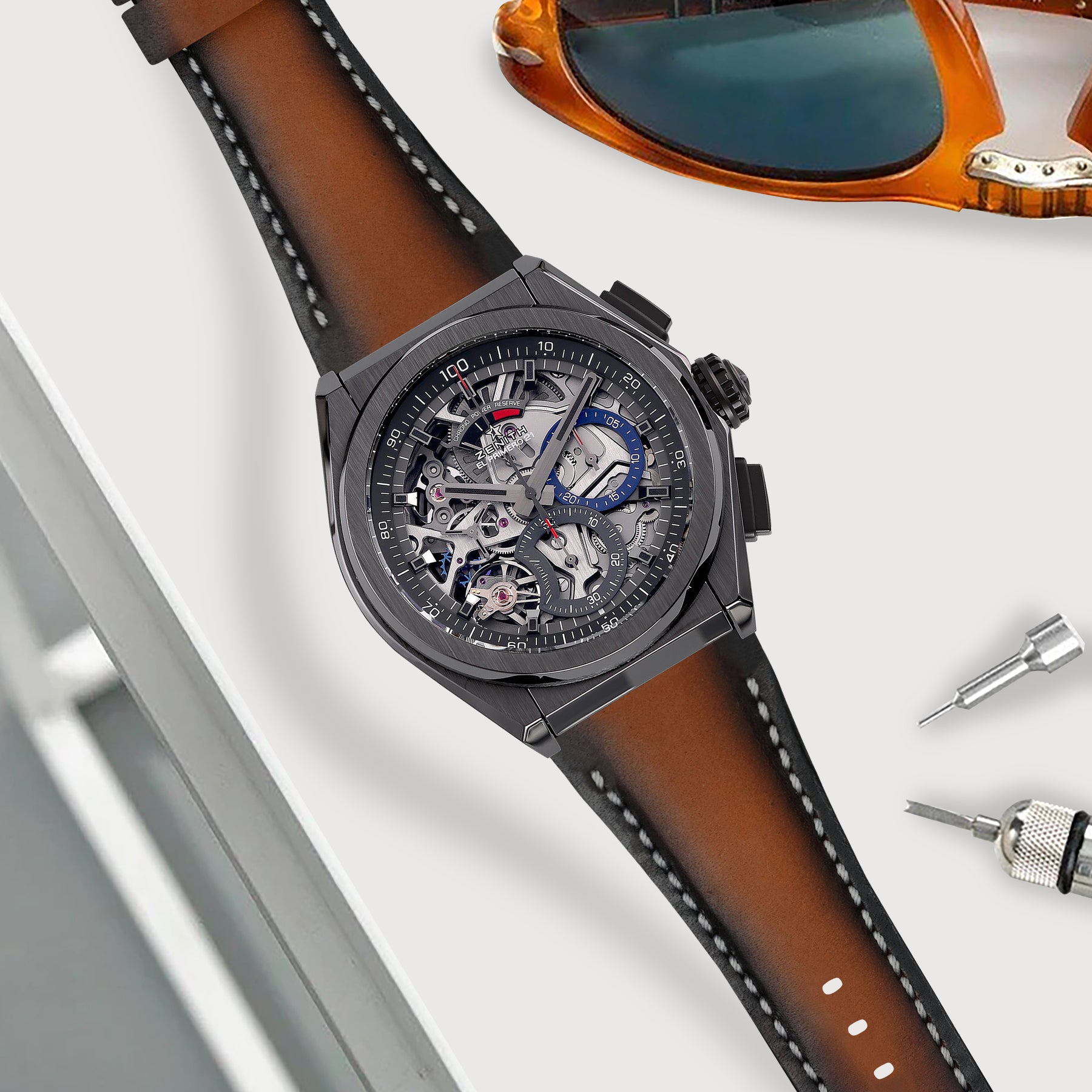 Description : Zenith Defy is built with a bold, futuristic architecture and we wanted our straps to reflect the same spirit — modern, technical and unmistakably refined. Crafted to our exact specifications and engineered to follow the unique dimensions of the Defy case, each strap features a seamless curved-end fit that sits perfectly against the watch, creating a clean, integrated look that feels as natural as the original design.