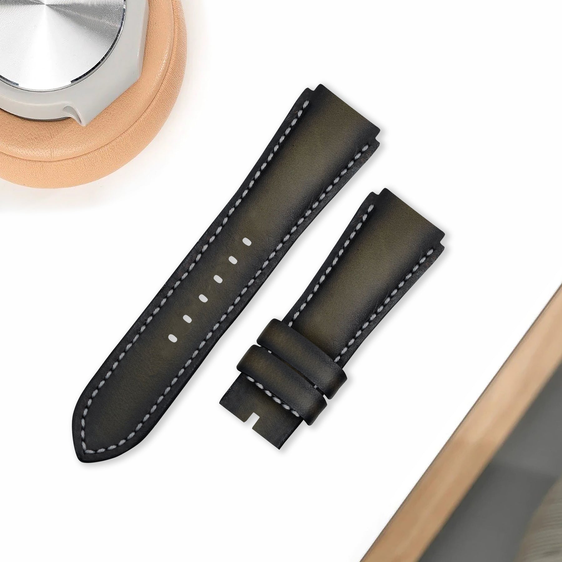 Our Dappled Black serie brings depth through texture—subtle, refined and designed to elevate without overpowering. From vegetable tanned leather from Italian tannery, it has a slightly firm feel and beautifully smooth surface to the touch. With time and wear, your strap will develop a natural sheen and deeper hues.