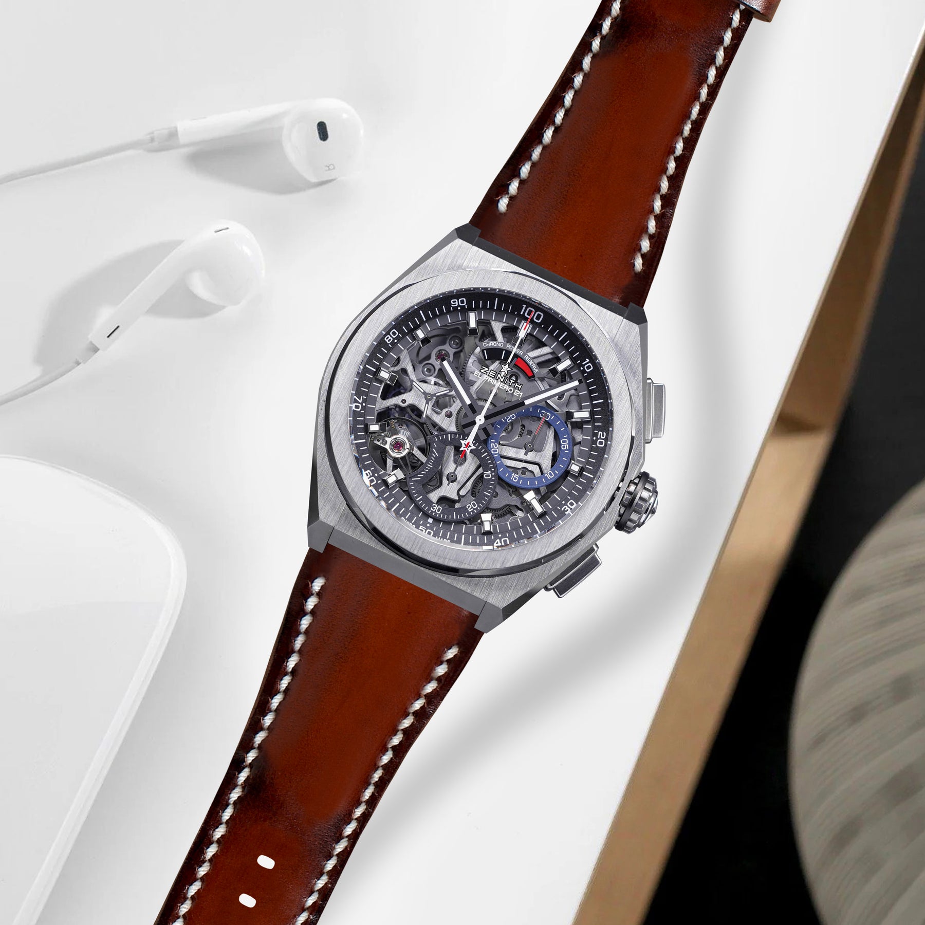Description : Zenith Defy is built with a bold, futuristic architecture and we wanted our straps to reflect the same spirit — modern, technical and unmistakably refined. Crafted to our exact specifications and engineered to follow the unique dimensions of the Defy case, each strap features a seamless curved-end fit that sits perfectly against the watch, creating a clean, integrated look that feels as natural as the original design.