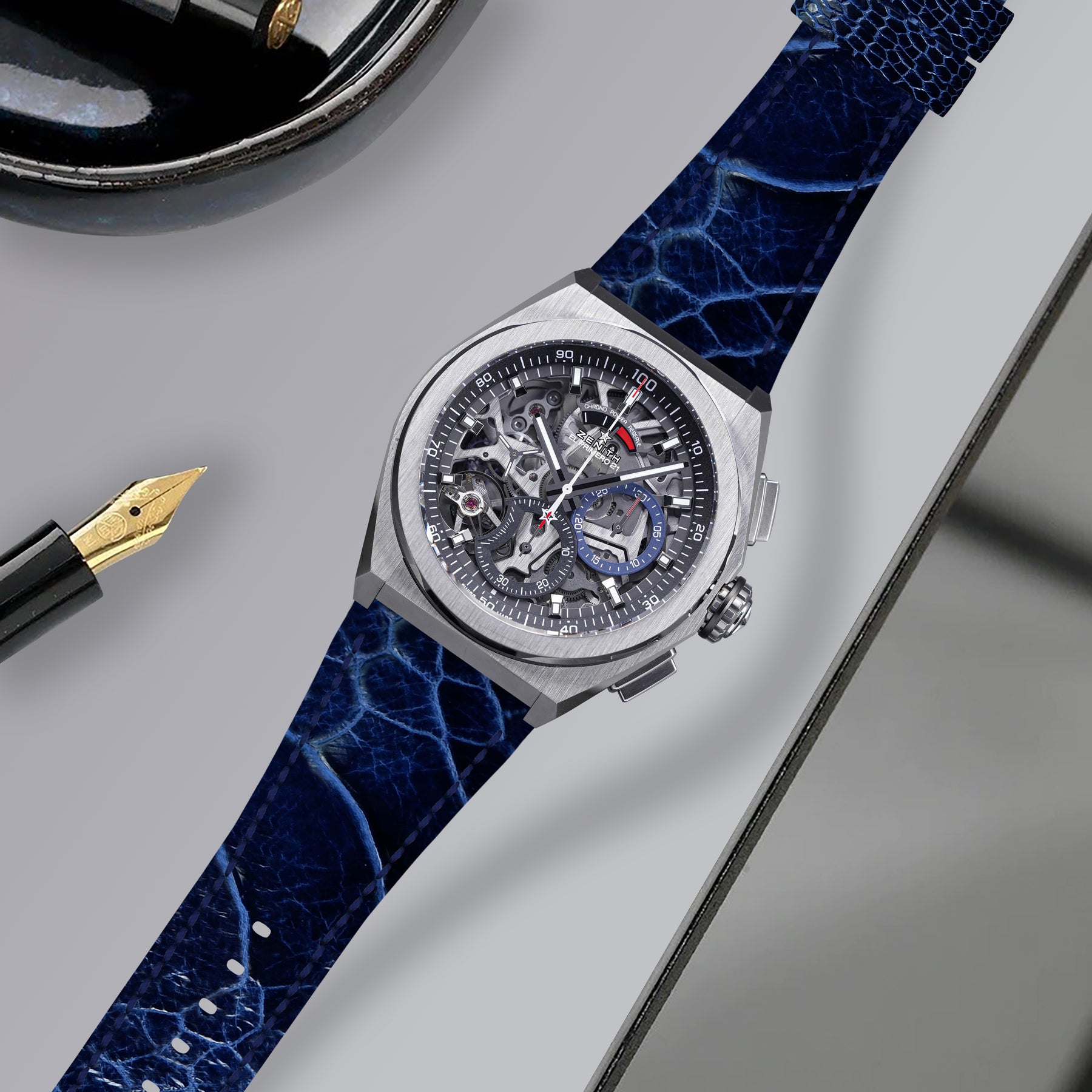 Description : Zenith Defy is built with a bold, futuristic architecture and we wanted our straps to reflect the same spirit — modern, technical and unmistakably refined. Crafted to our exact specifications and engineered to follow the unique dimensions of the Defy case, each strap features a seamless curved-end fit that sits perfectly against the watch, creating a clean, integrated look that feels as natural as the original design.
