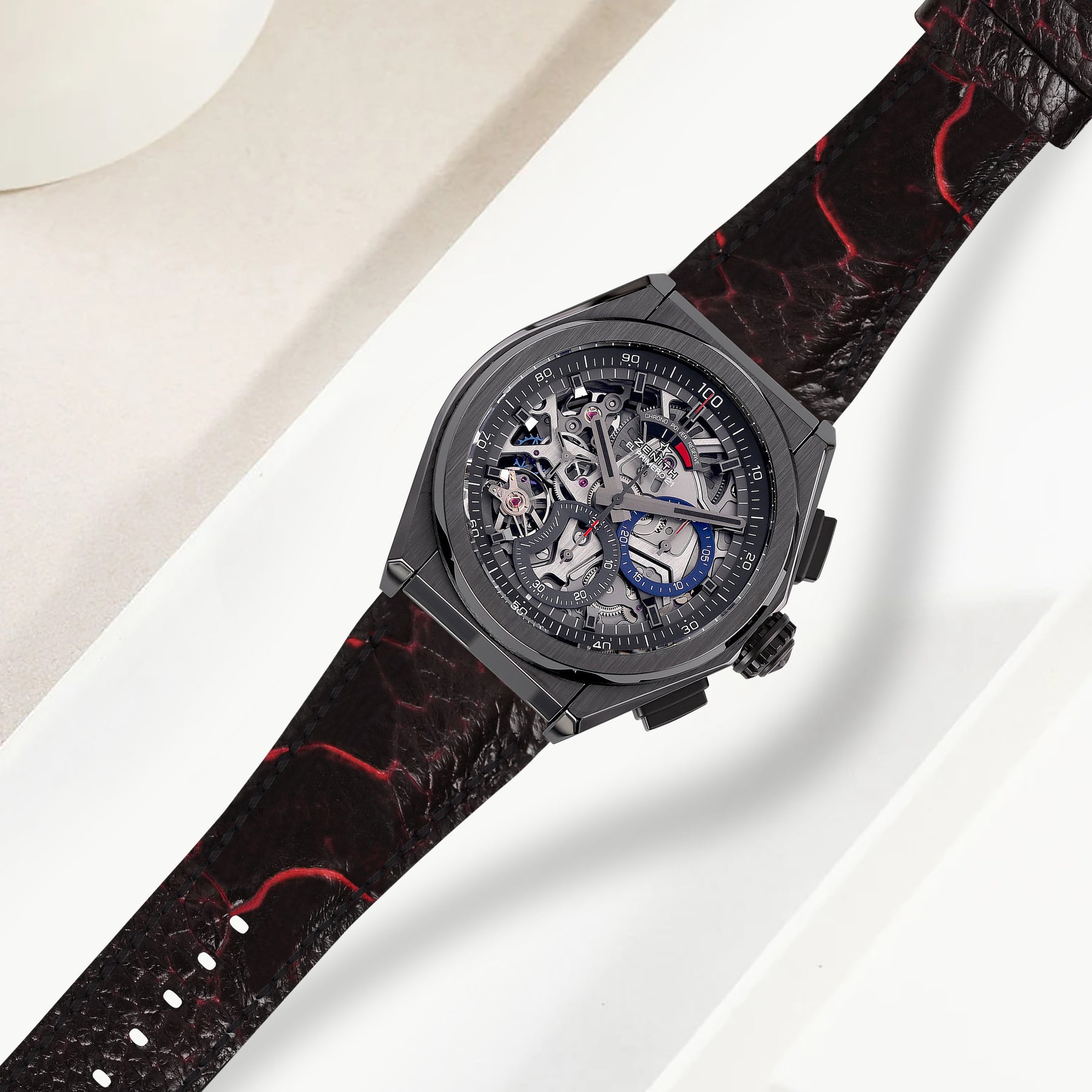 Description : Zenith Defy is built with a bold, futuristic architecture and we wanted our straps to reflect the same spirit — modern, technical and unmistakably refined. Crafted to our exact specifications and engineered to follow the unique dimensions of the Defy case, each strap features a seamless curved-end fit that sits perfectly against the watch, creating a clean, integrated look that feels as natural as the original design.