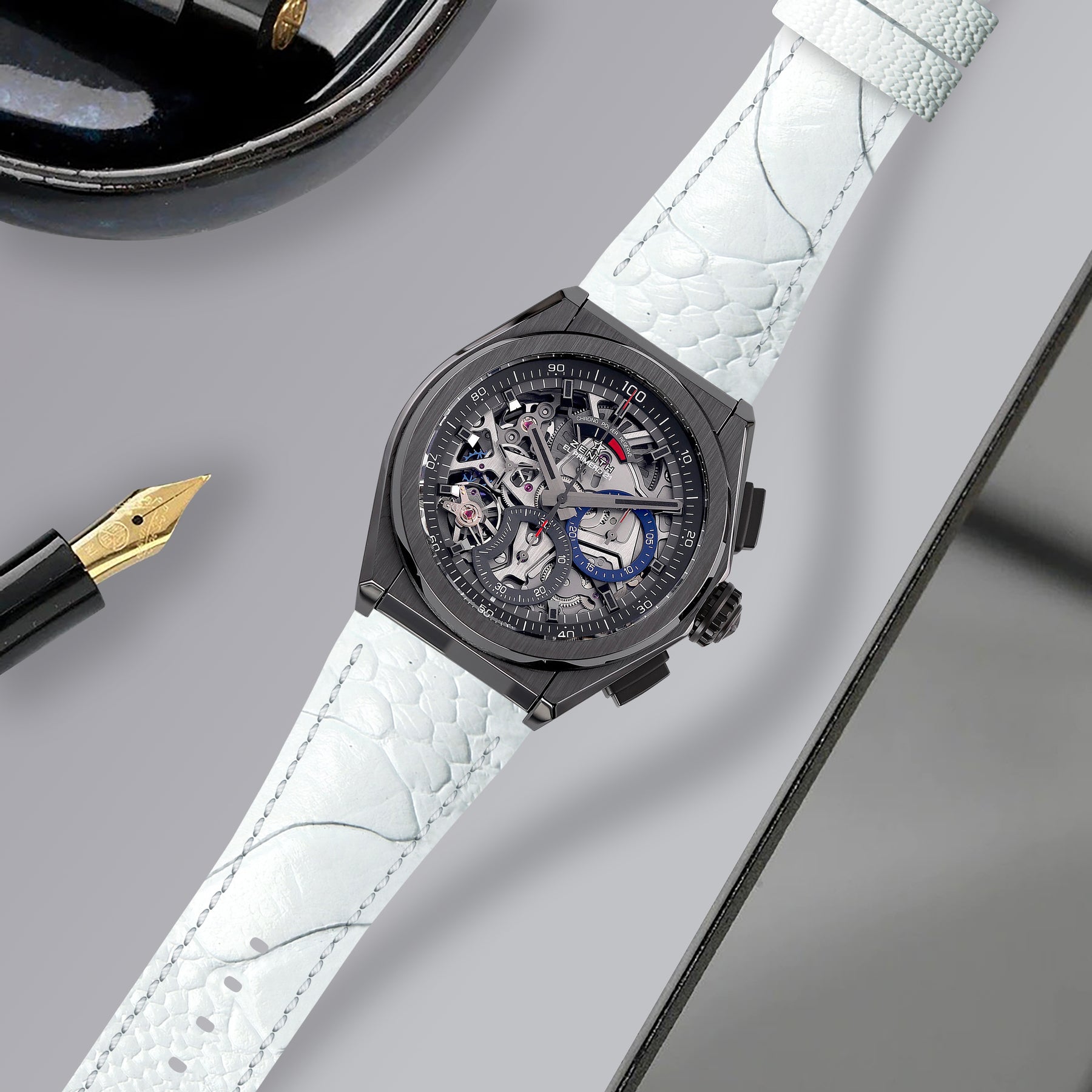 Description : Zenith Defy is built with a bold, futuristic architecture and we wanted our straps to reflect the same spirit — modern, technical and unmistakably refined. Crafted to our exact specifications and engineered to follow the unique dimensions of the Defy case, each strap features a seamless curved-end fit that sits perfectly against the watch, creating a clean, integrated look that feels as natural as the original design.