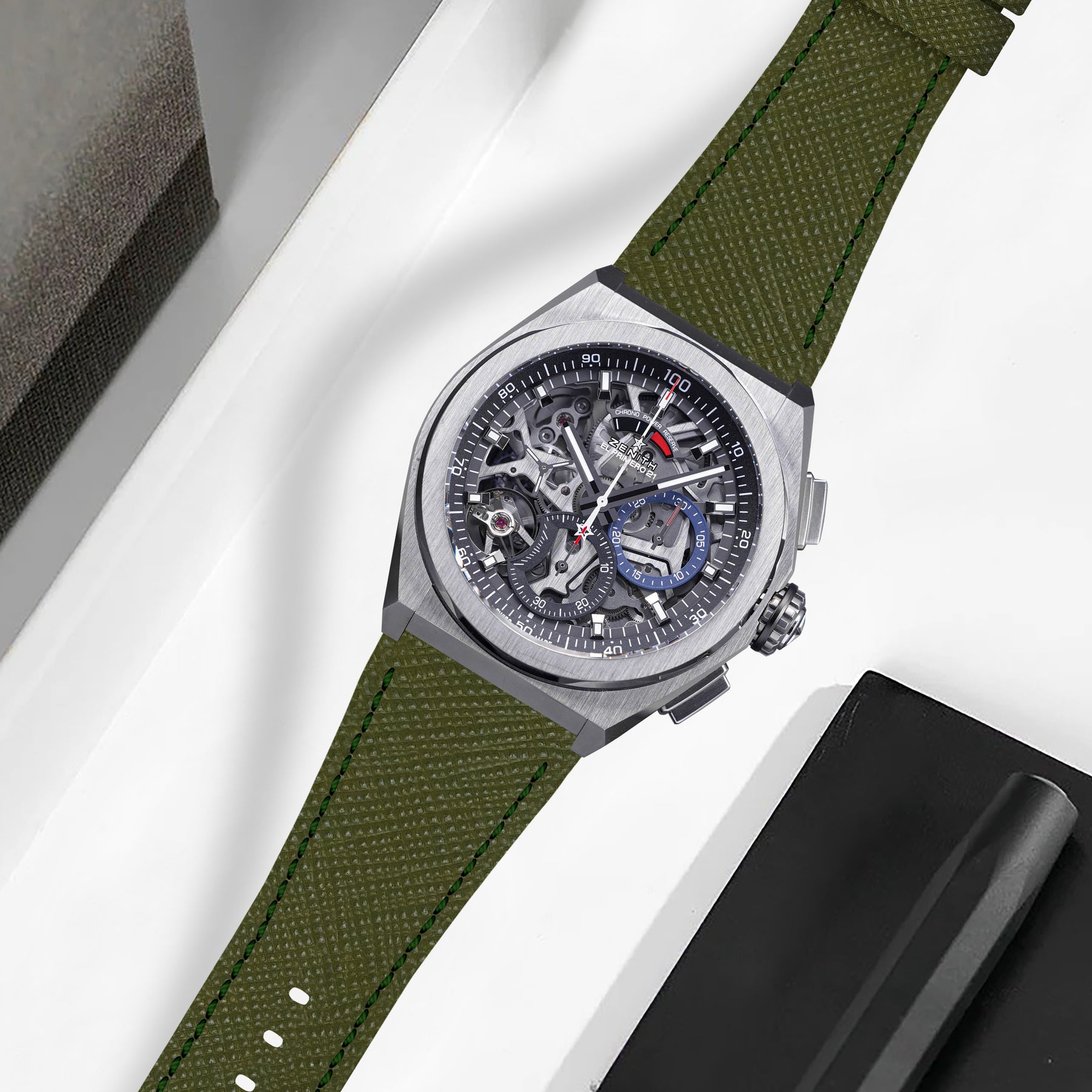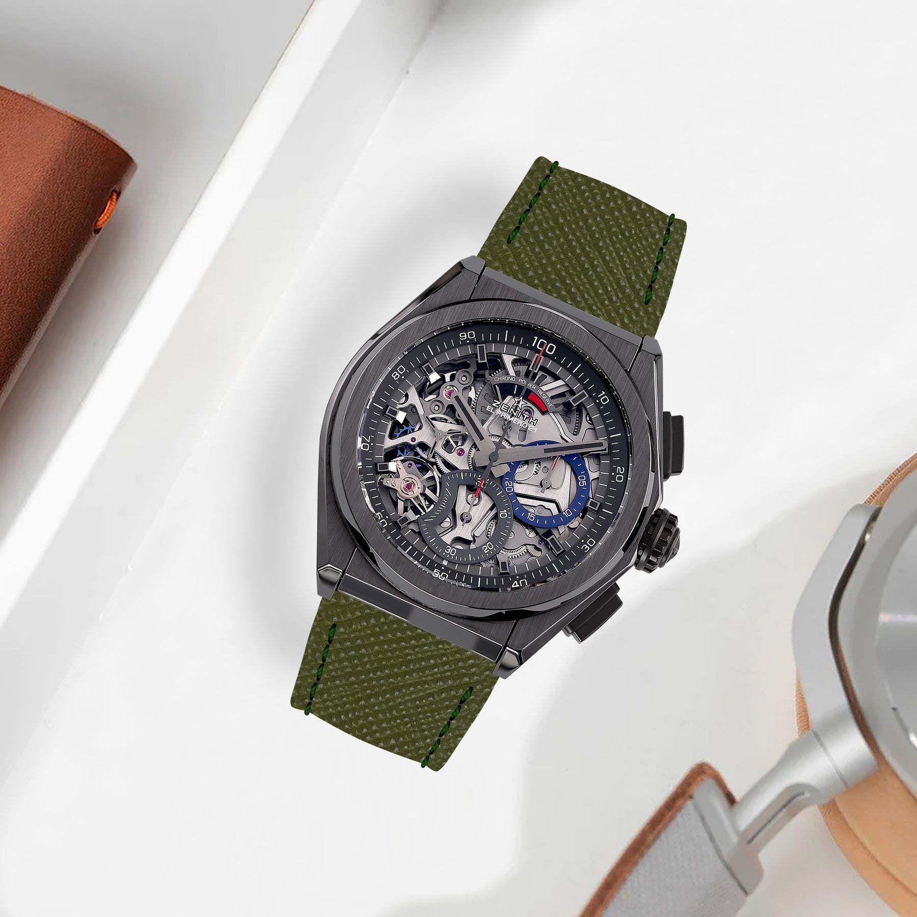 Description : Zenith Defy is built with a bold, futuristic architecture and we wanted our straps to reflect the same spirit — modern, technical and unmistakably refined. Crafted to our exact specifications and engineered to follow the unique dimensions of the Defy case, each strap features a seamless curved-end fit that sits perfectly against the watch, creating a clean, integrated look that feels as natural as the original design.