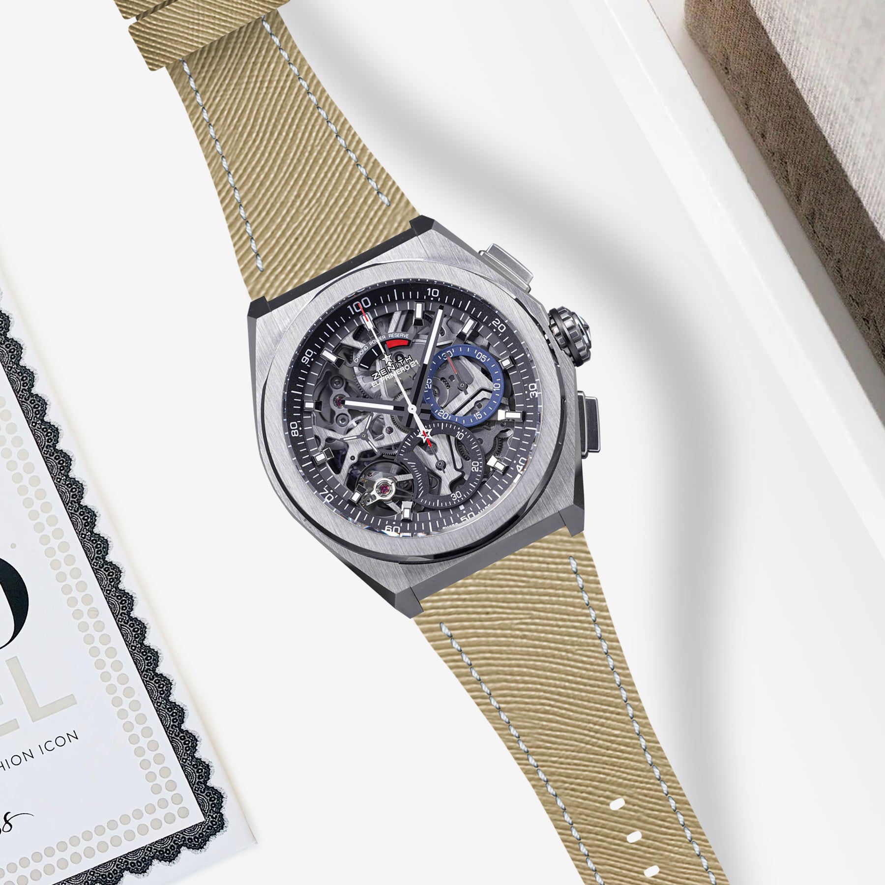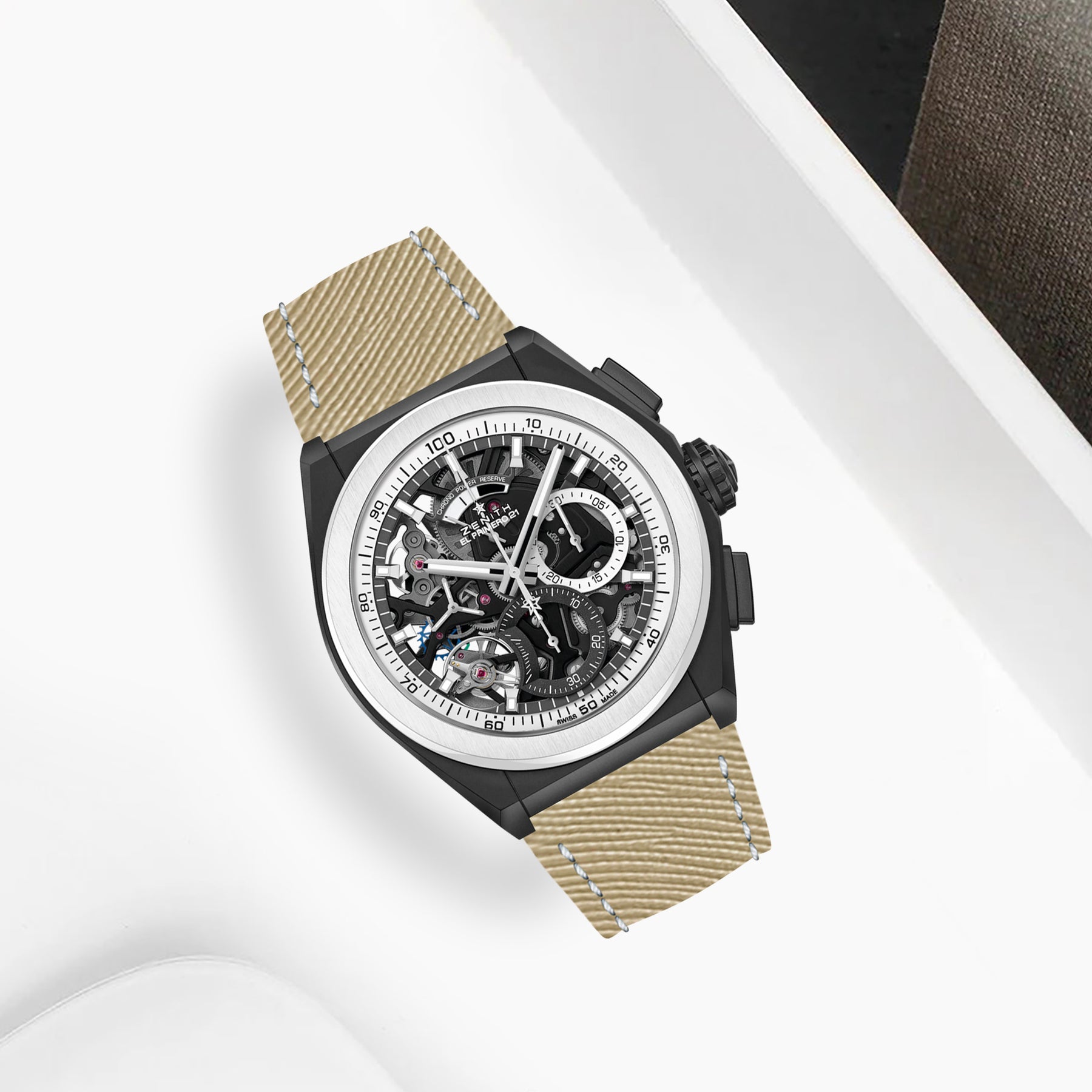 Description : Zenith Defy is built with a bold, futuristic architecture and we wanted our straps to reflect the same spirit — modern, technical and unmistakably refined. Crafted to our exact specifications and engineered to follow the unique dimensions of the Defy case, each strap features a seamless curved-end fit that sits perfectly against the watch, creating a clean, integrated look that feels as natural as the original design.