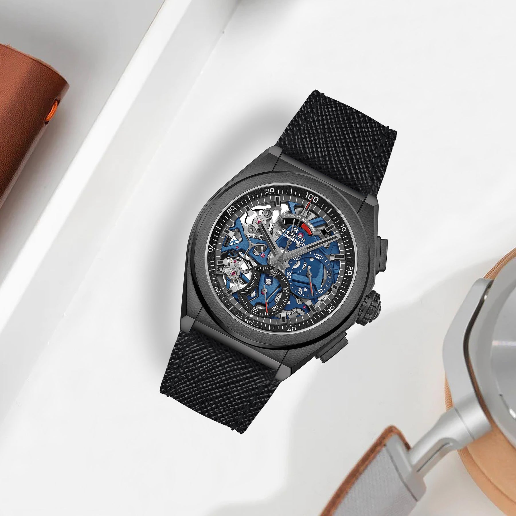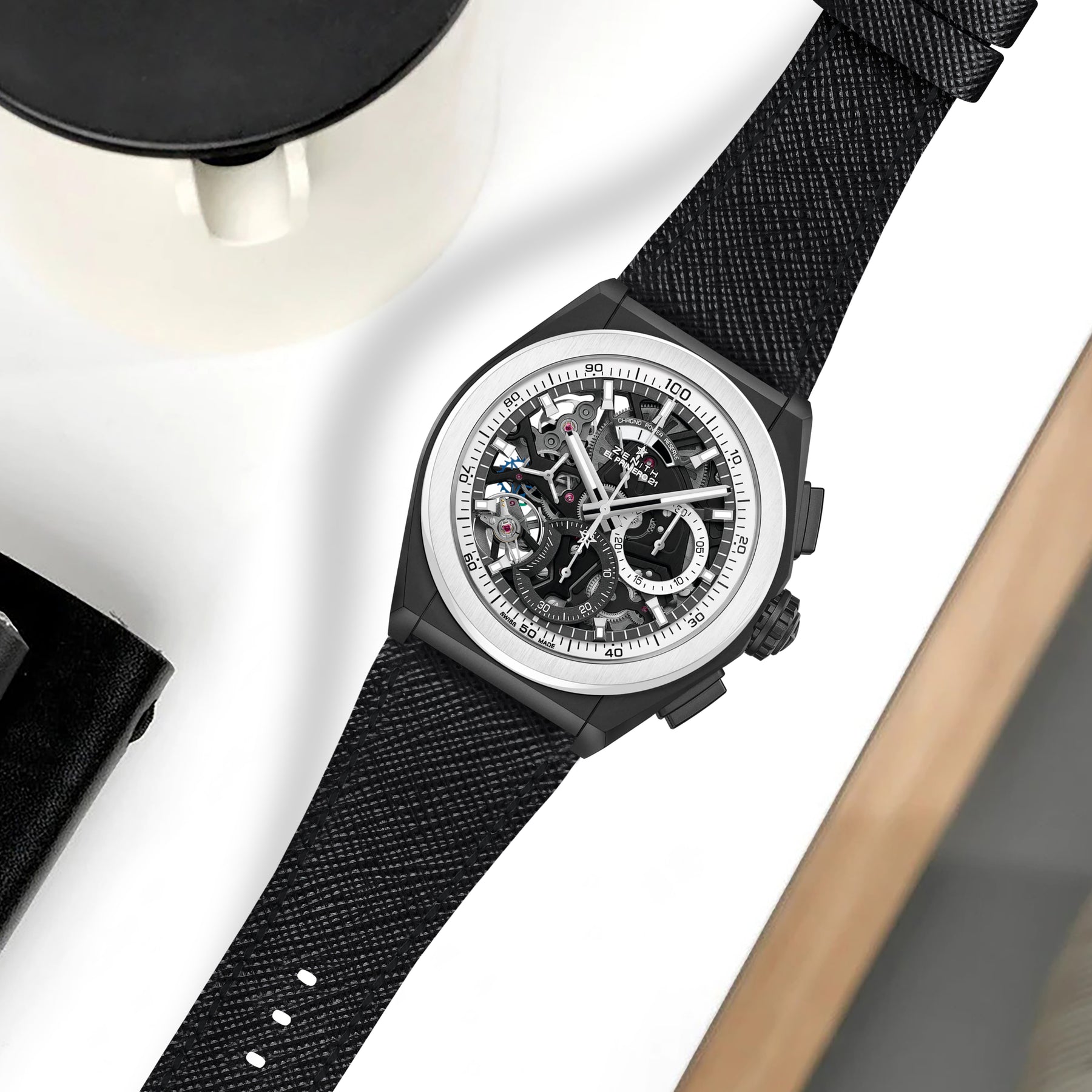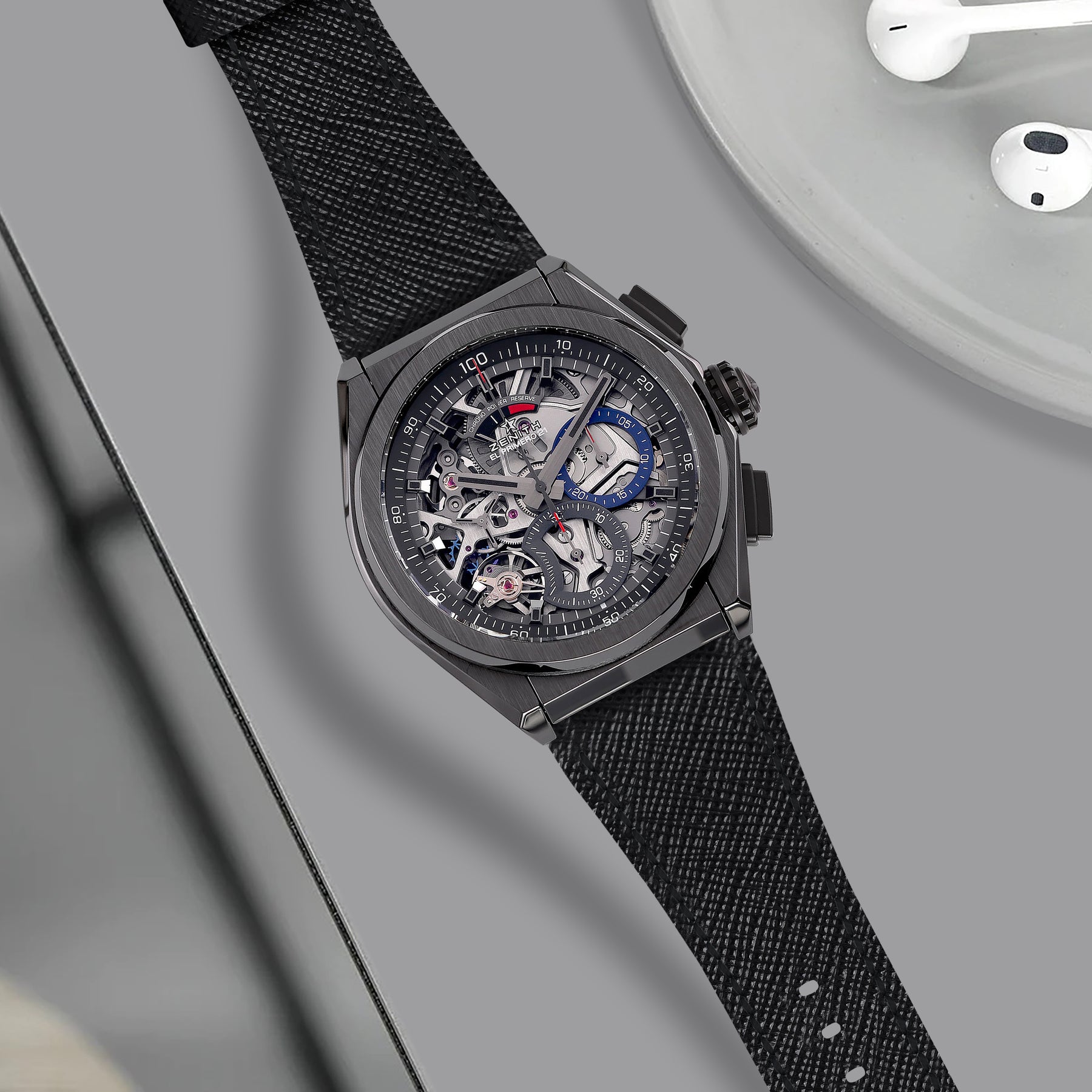 Description : Zenith Defy is built with a bold, futuristic architecture and we wanted our straps to reflect the same spirit — modern, technical and unmistakably refined. Crafted to our exact specifications and engineered to follow the unique dimensions of the Defy case, each strap features a seamless curved-end fit that sits perfectly against the watch, creating a clean, integrated look that feels as natural as the original design.