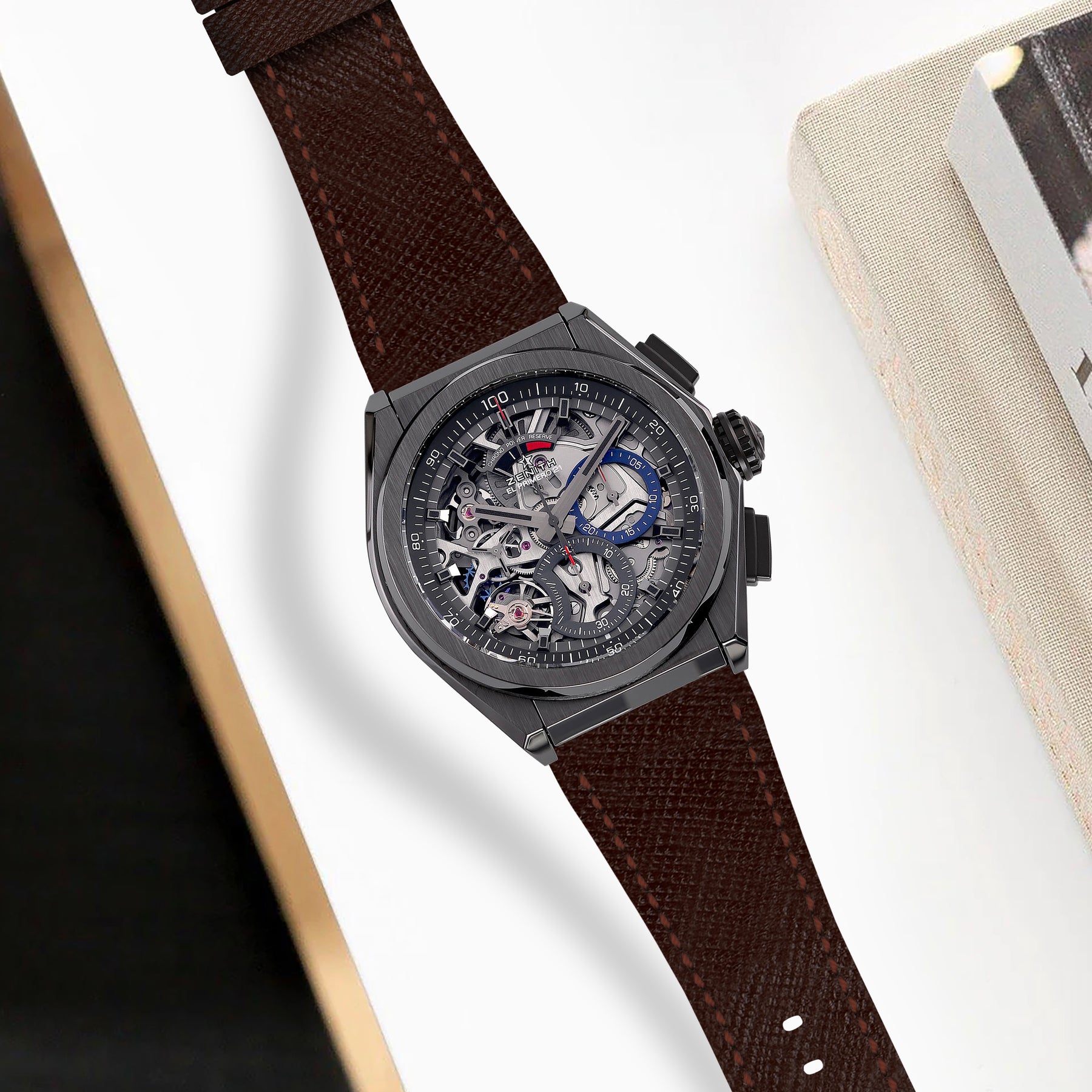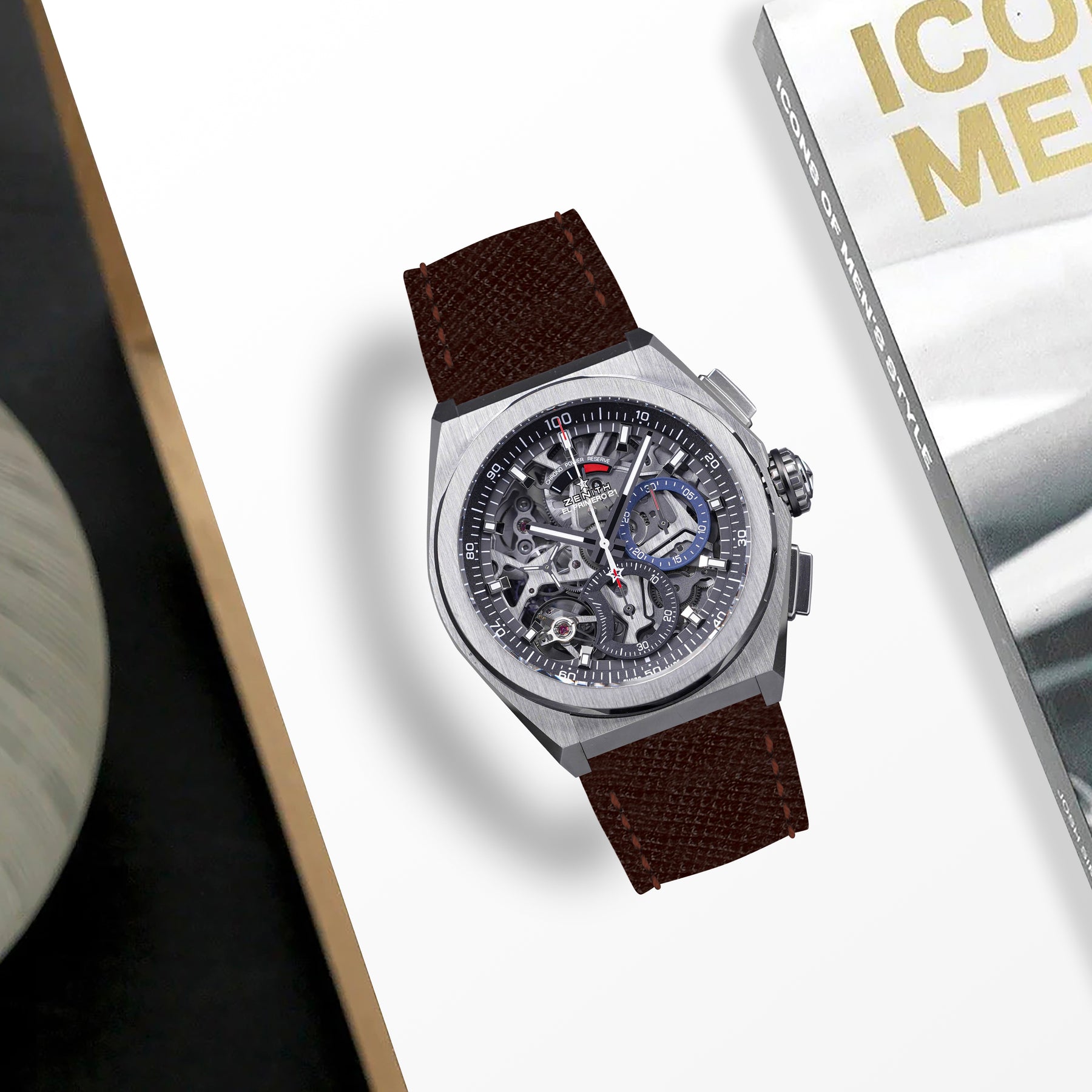 Description : Zenith Defy is built with a bold, futuristic architecture and we wanted our straps to reflect the same spirit — modern, technical and unmistakably refined. Crafted to our exact specifications and engineered to follow the unique dimensions of the Defy case, each strap features a seamless curved-end fit that sits perfectly against the watch, creating a clean, integrated look that feels as natural as the original design.
