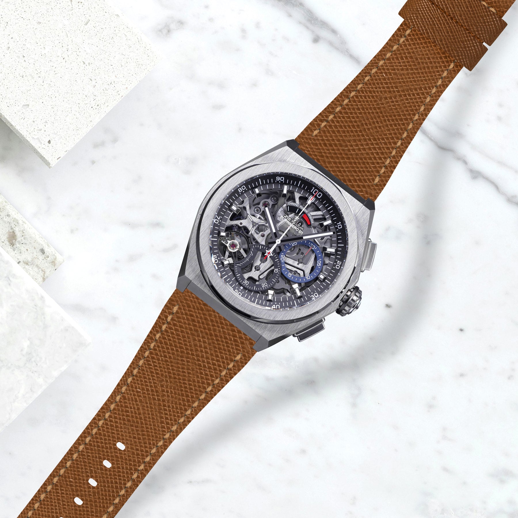 Description : Zenith Defy is built with a bold, futuristic architecture and we wanted our straps to reflect the same spirit — modern, technical and unmistakably refined. Crafted to our exact specifications and engineered to follow the unique dimensions of the Defy case, each strap features a seamless curved-end fit that sits perfectly against the watch, creating a clean, integrated look that feels as natural as the original design.