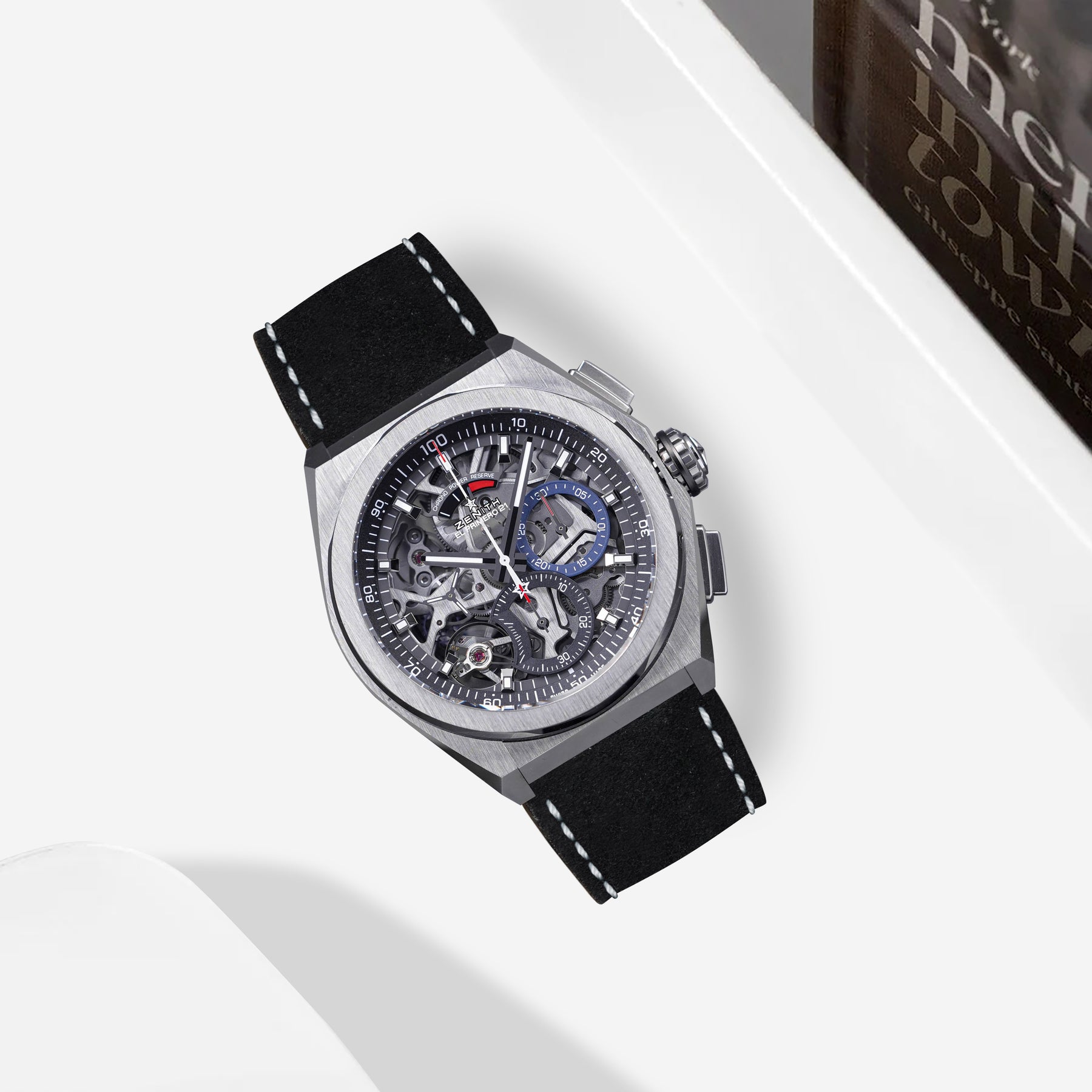 Description : Zenith Defy is built with a bold, futuristic architecture and we wanted our straps to reflect the same spirit — modern, technical and unmistakably refined. Crafted to our exact specifications and engineered to follow the unique dimensions of the Defy case, each strap features a seamless curved-end fit that sits perfectly against the watch, creating a clean, integrated look that feels as natural as the original design.
