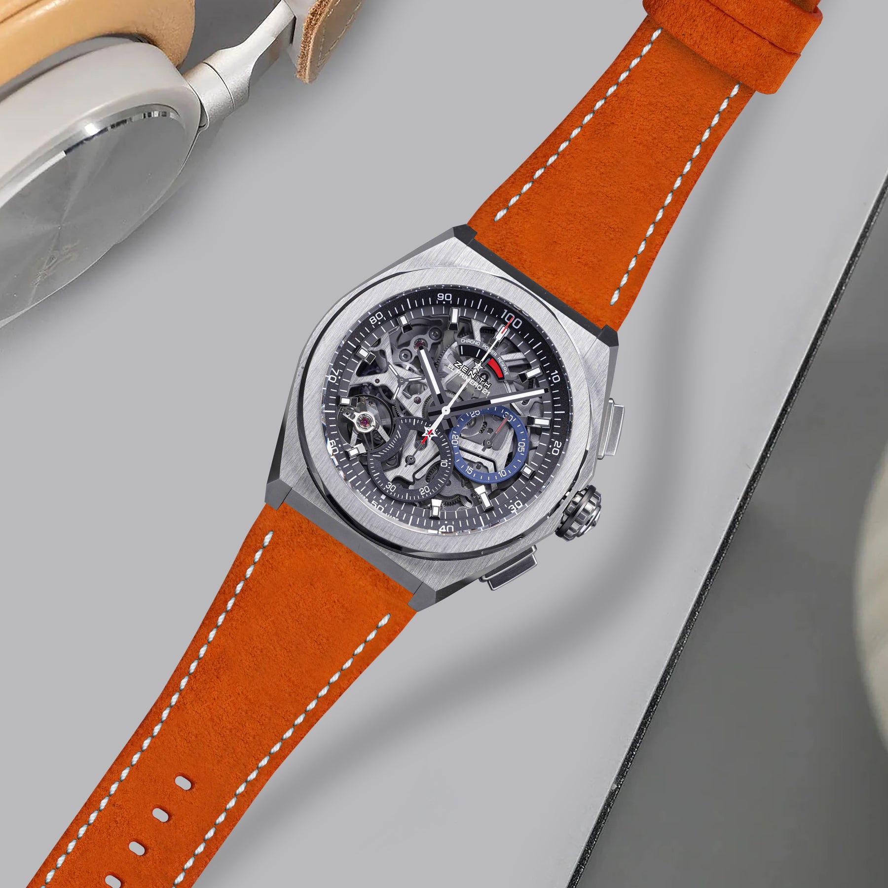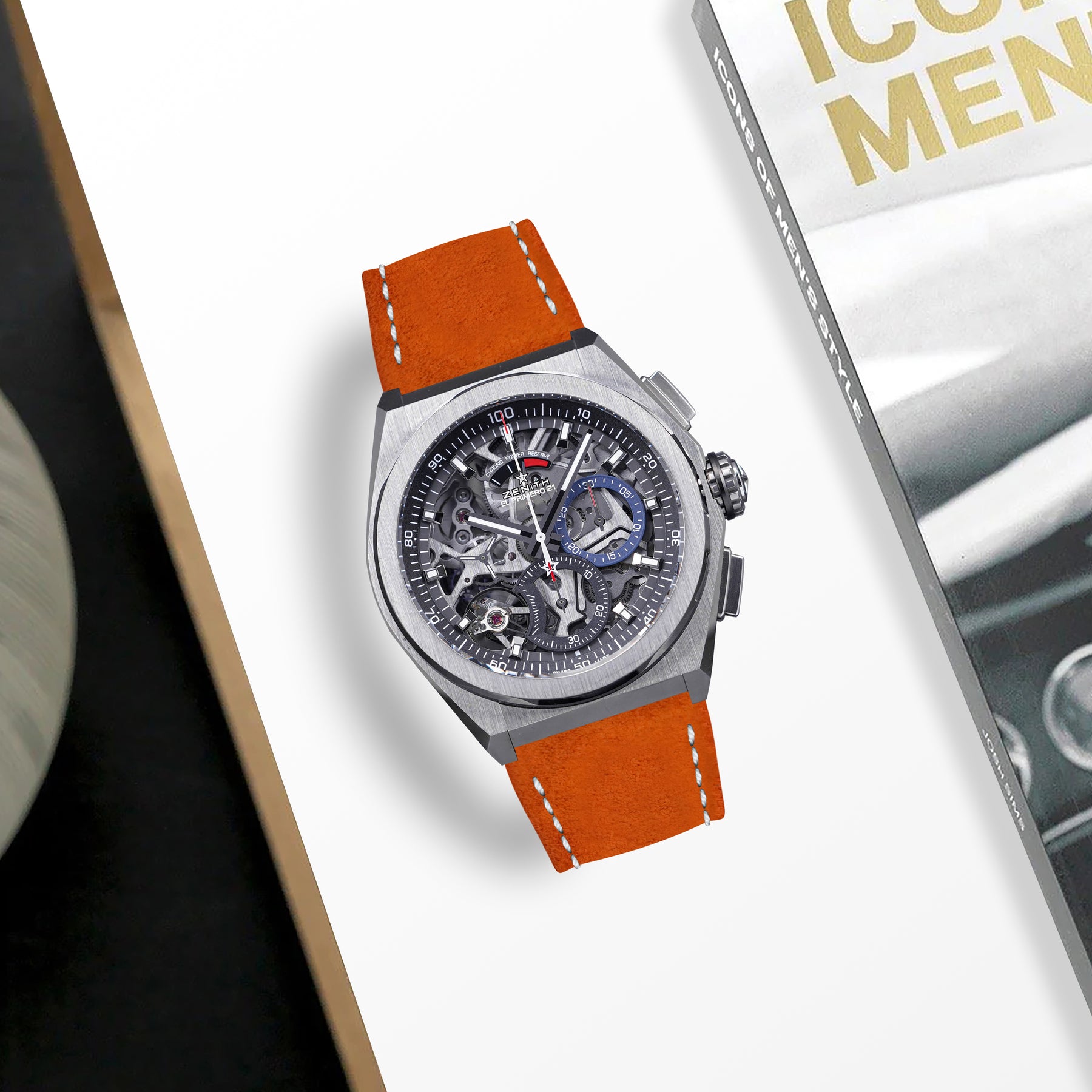 Description : Zenith Defy is built with a bold, futuristic architecture and we wanted our straps to reflect the same spirit — modern, technical and unmistakably refined. Crafted to our exact specifications and engineered to follow the unique dimensions of the Defy case, each strap features a seamless curved-end fit that sits perfectly against the watch, creating a clean, integrated look that feels as natural as the original design.