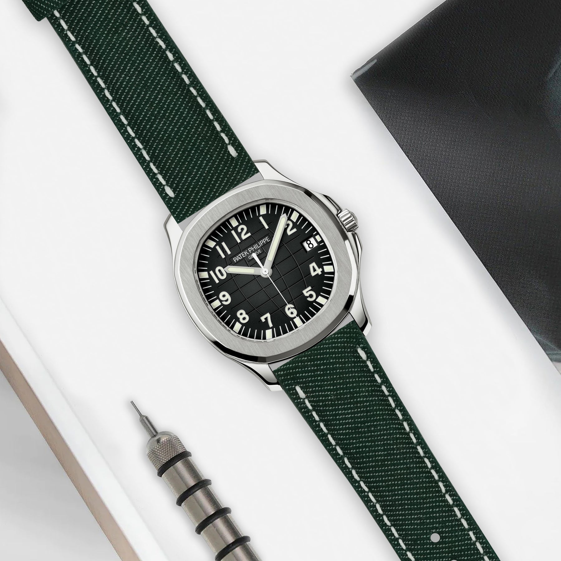 Description : Looking for something more eye-catching? Japanese Denim Brewster Green brings contrast and clarity to your wrist. The deep green denim tone combined with visible white stitch seams gives the strap a fresh, expressive look that stands out without being loud.
