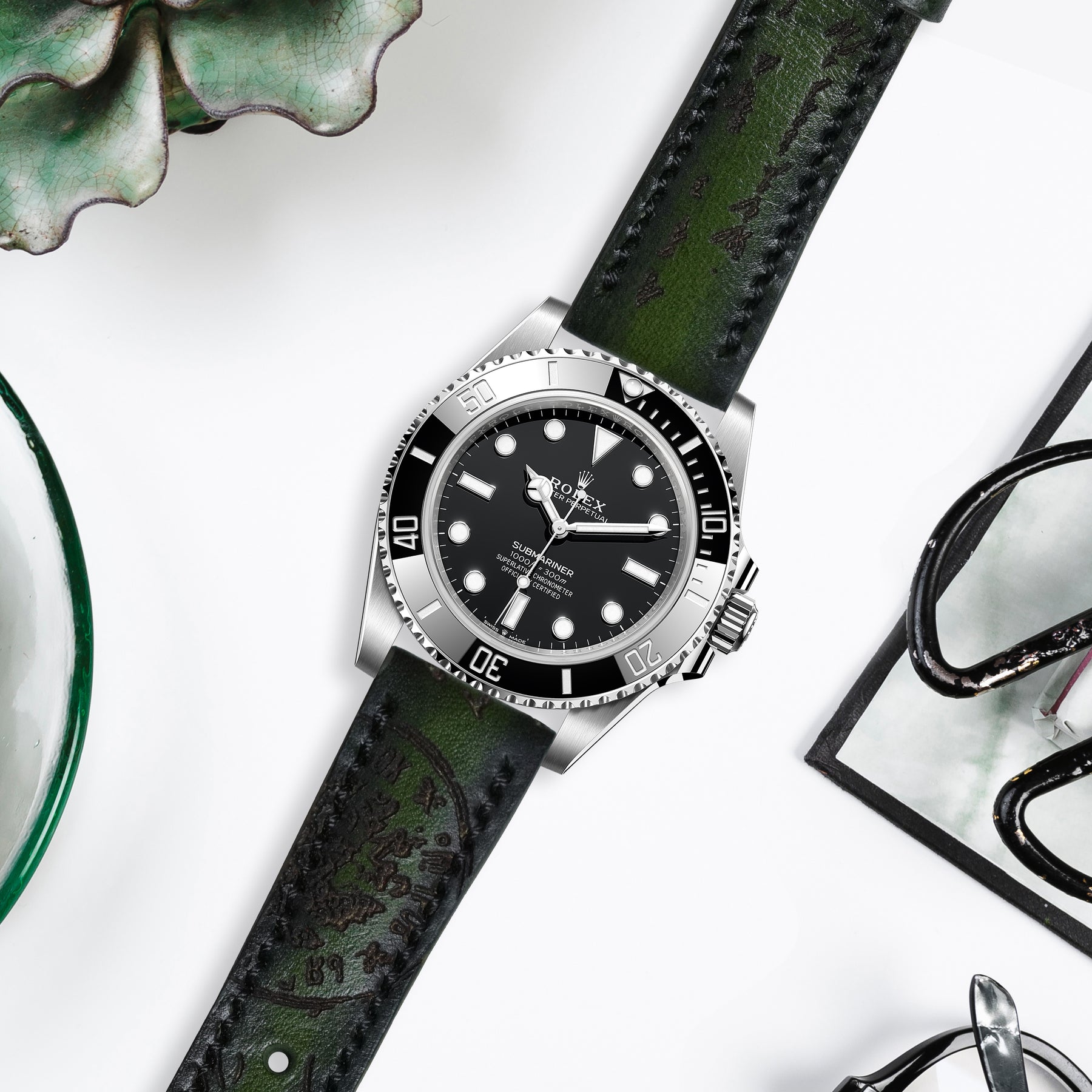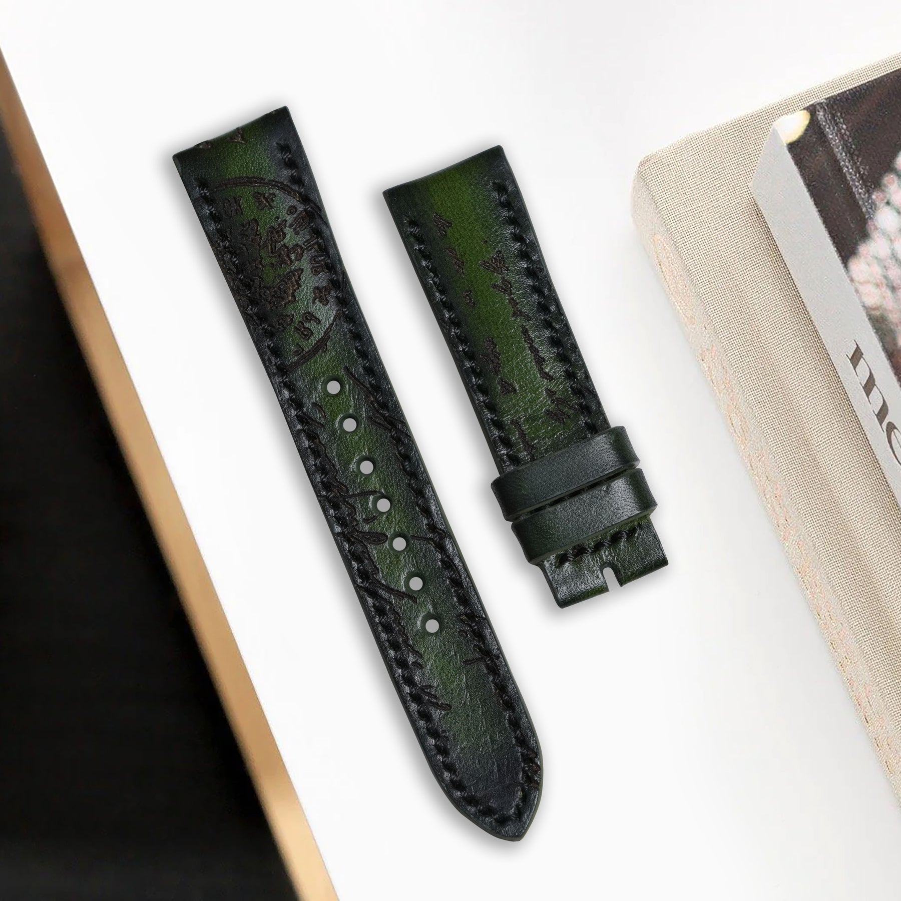 Description : Our newest Oak Green Scritto was inspired by the signature leather of the House of Berluti, and it looks absolutely incredible in more ways than one.
