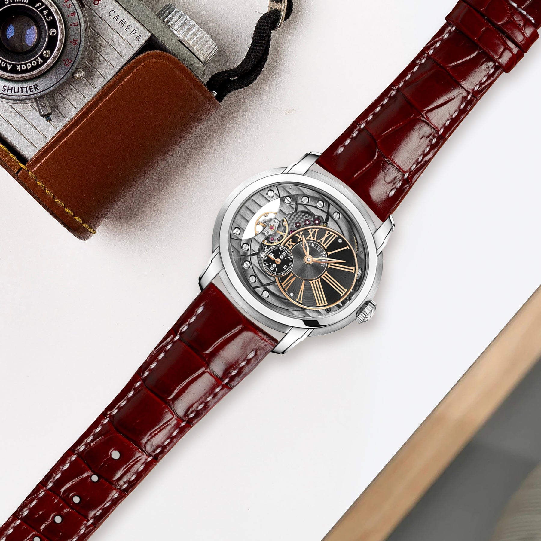 Description : The Audemars Piguet Millenary is defined by its sculptural oval case and refined elegance, making it one of the most distinctive designs in modern watchmaking. Our Croco is crafted specifically for the Millenary’s integrated curved lug construction, rather than using a standard straight strap profile. Each strap is made to our exact specifications to follow the case geometry closely, ensuring a precise fit, improved comfort, and a clean, case-hugging finish that sits flush against the watch.