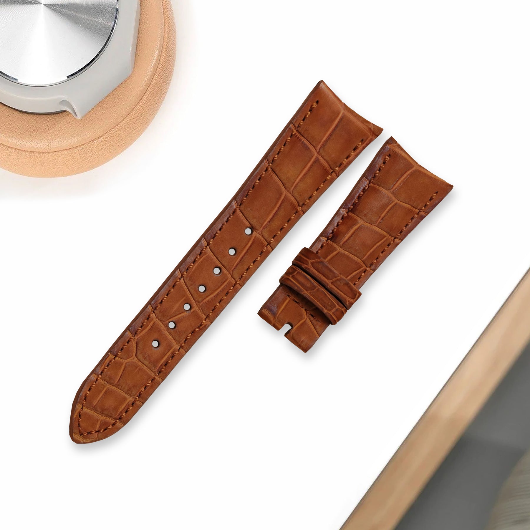 Description : The Audemars Piguet Millenary is defined by its sculptural oval case and refined elegance, making it one of the most distinctive designs in modern watchmaking. Our Croco Nubuck is crafted specifically for the Millenary’s integrated curved lug construction, rather than using a standard straight strap profile. Each strap is made to our exact specifications to follow the case geometry closely, ensuring a precise fit, improved comfort, and a clean, case-hugging finish that sits flush against the watch.