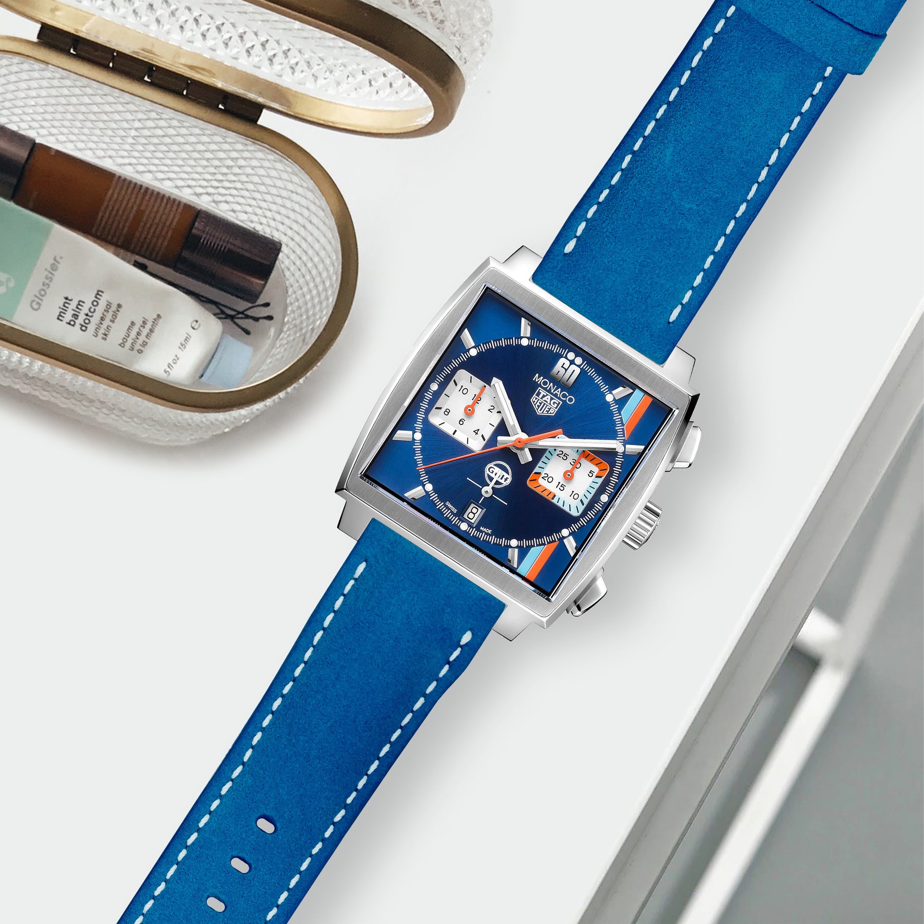 Tag Heuer Monaco Straps - Suede Sky Blue