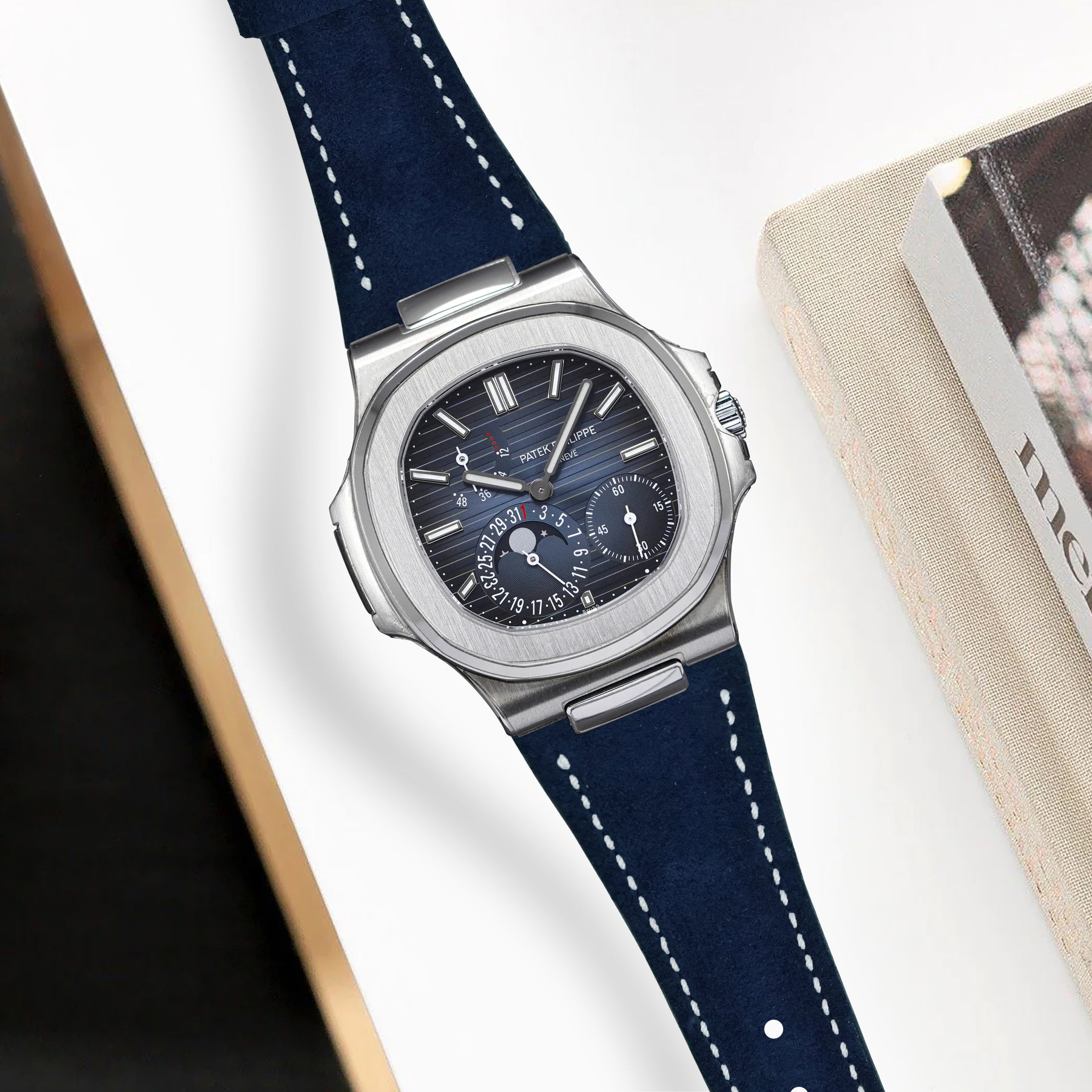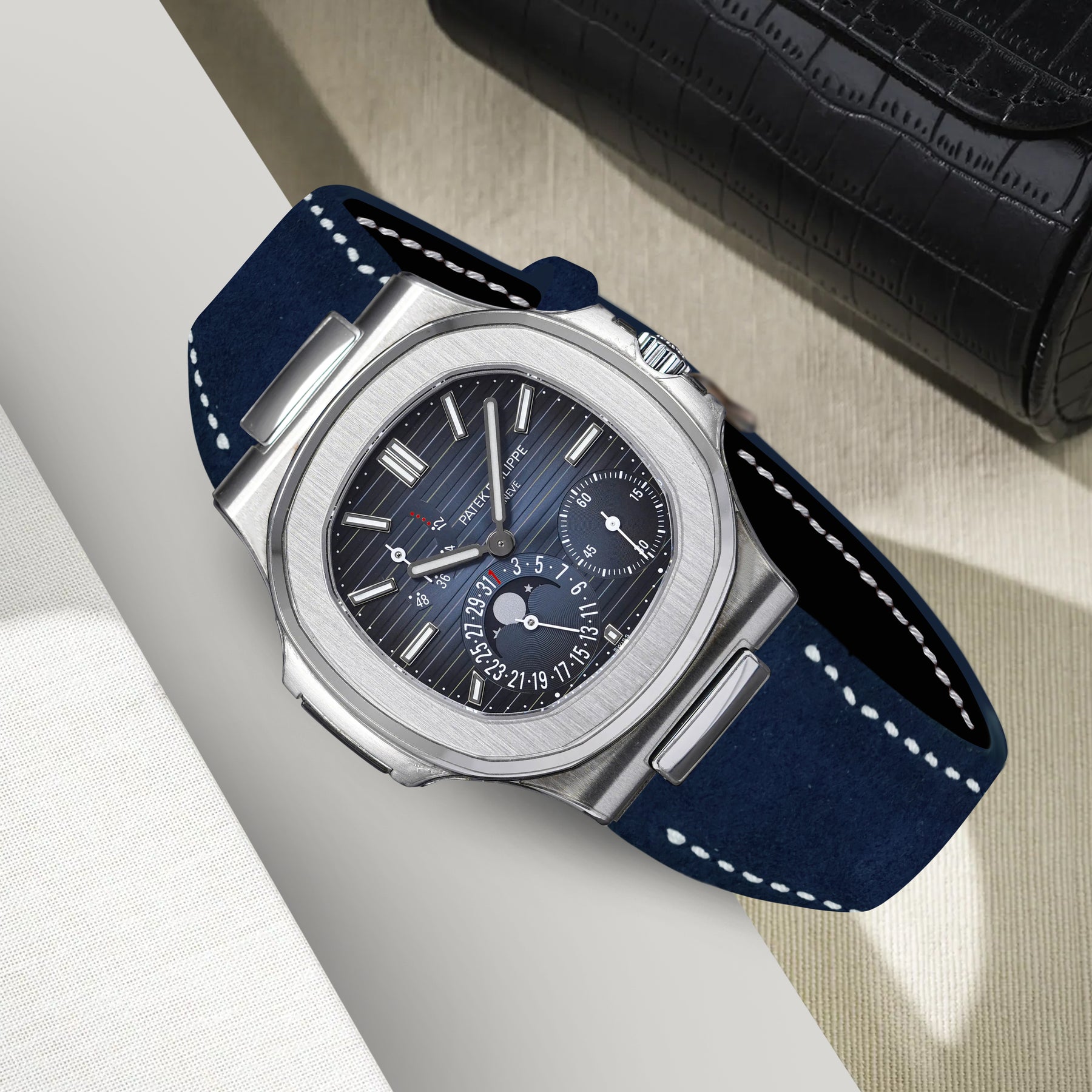 Patek Nautilus Straps - Suede Navy Blue