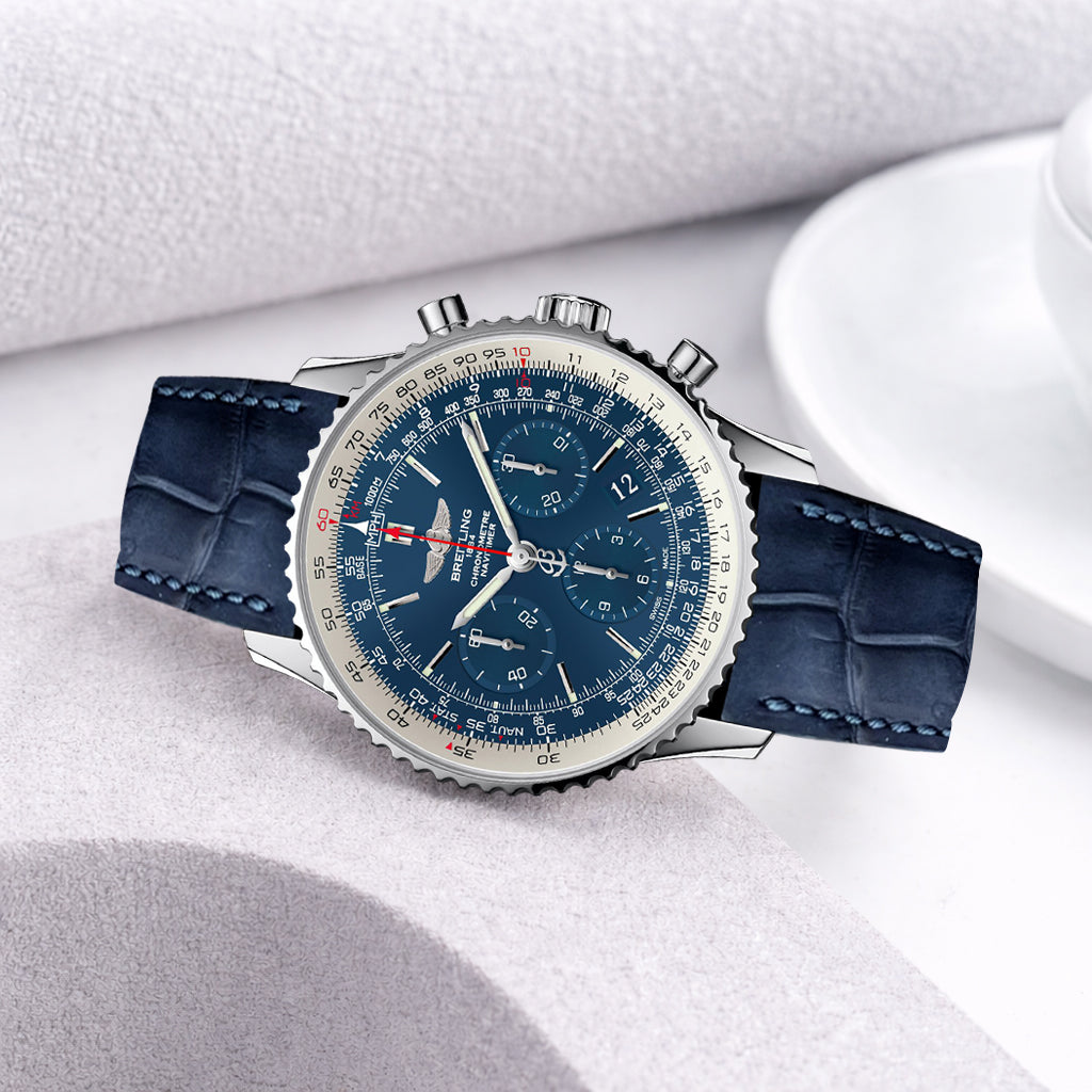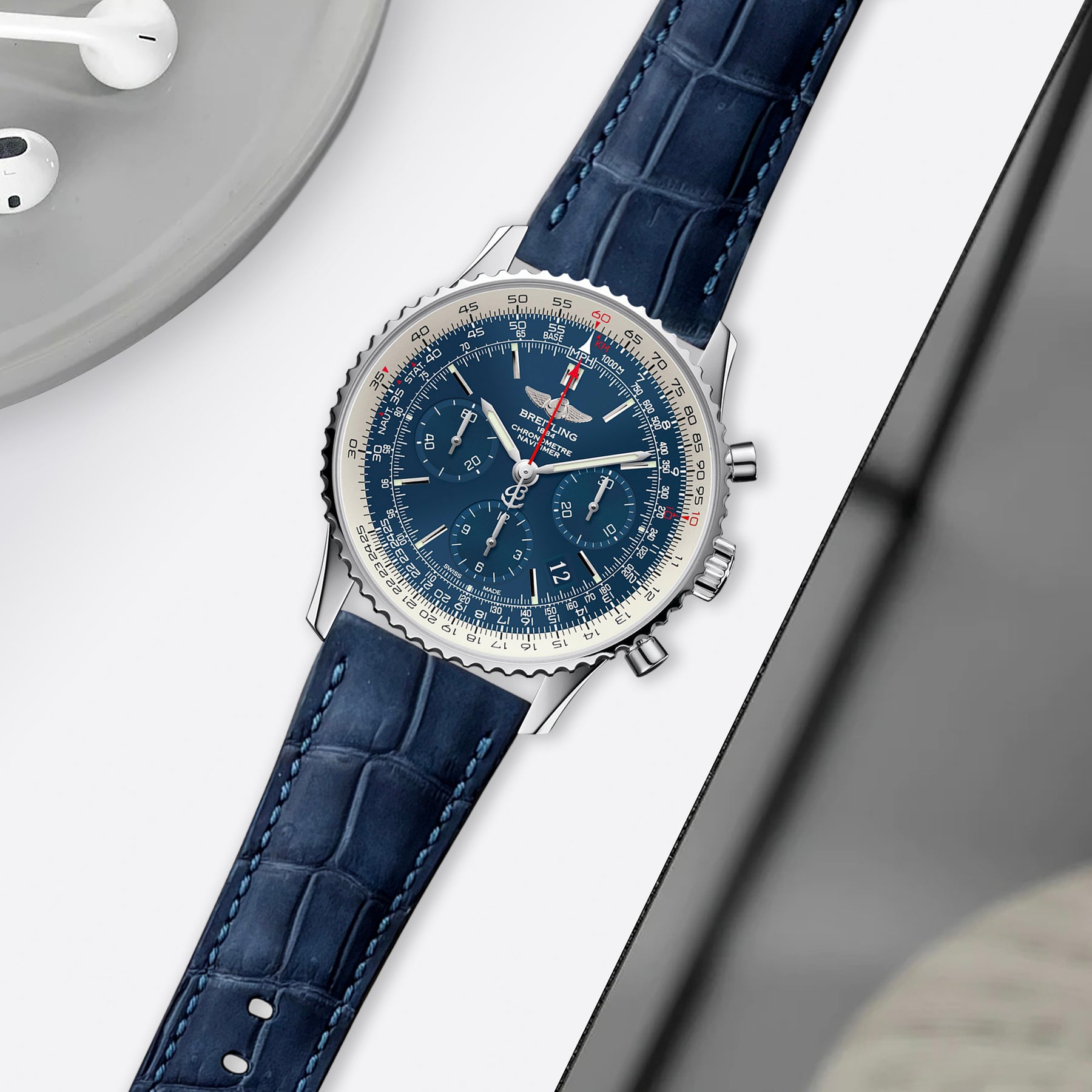Breitling Navitimer Straps - Croco Nubuck Navy Blue