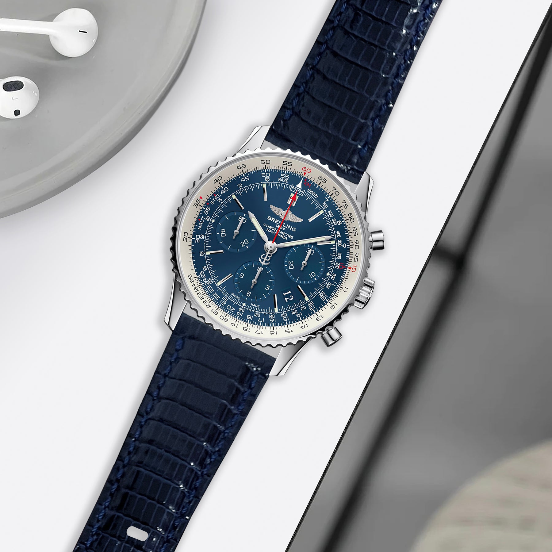 Breitling Navitimer Straps - Lizard Navy Blue